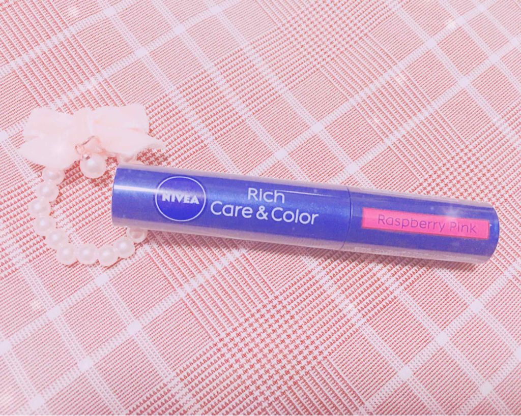 手軽に血色感GET♡荒れやすい唇でも安心して使える♡ ニベア リッチケア&カラーリップ 軽くメイクしたけどティント面倒な日や唇荒れててティント使いたくない時 すっぴんの時の血色感UPなど、 保湿成分はもちろんだけどUVカットもついてるの最高♡