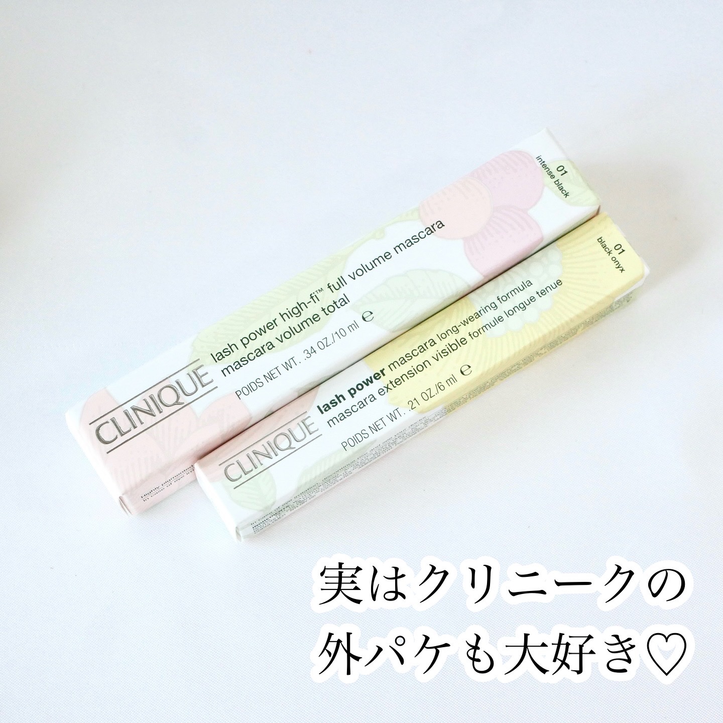 【#CLINIQUE/#ラッシュパワーハイファイフルボリュームマスカラ】01.インテンスブラック粘度のあるテクスチャーのマスカラしっかりまつ毛に絡んでボリュームが出ると思いました。が、液が重すぎてマスカラ下地を塗っていてもカールが下がりやすい...