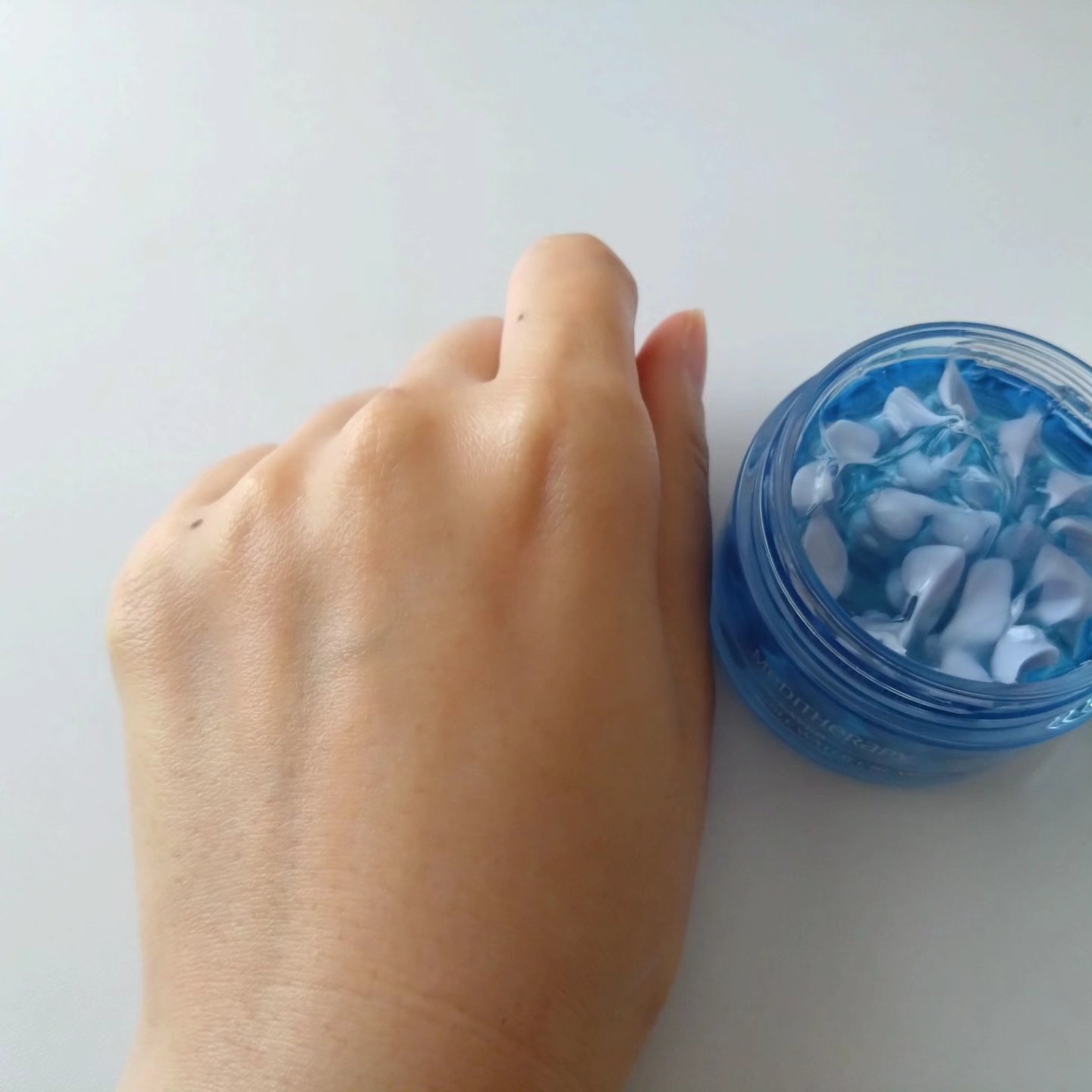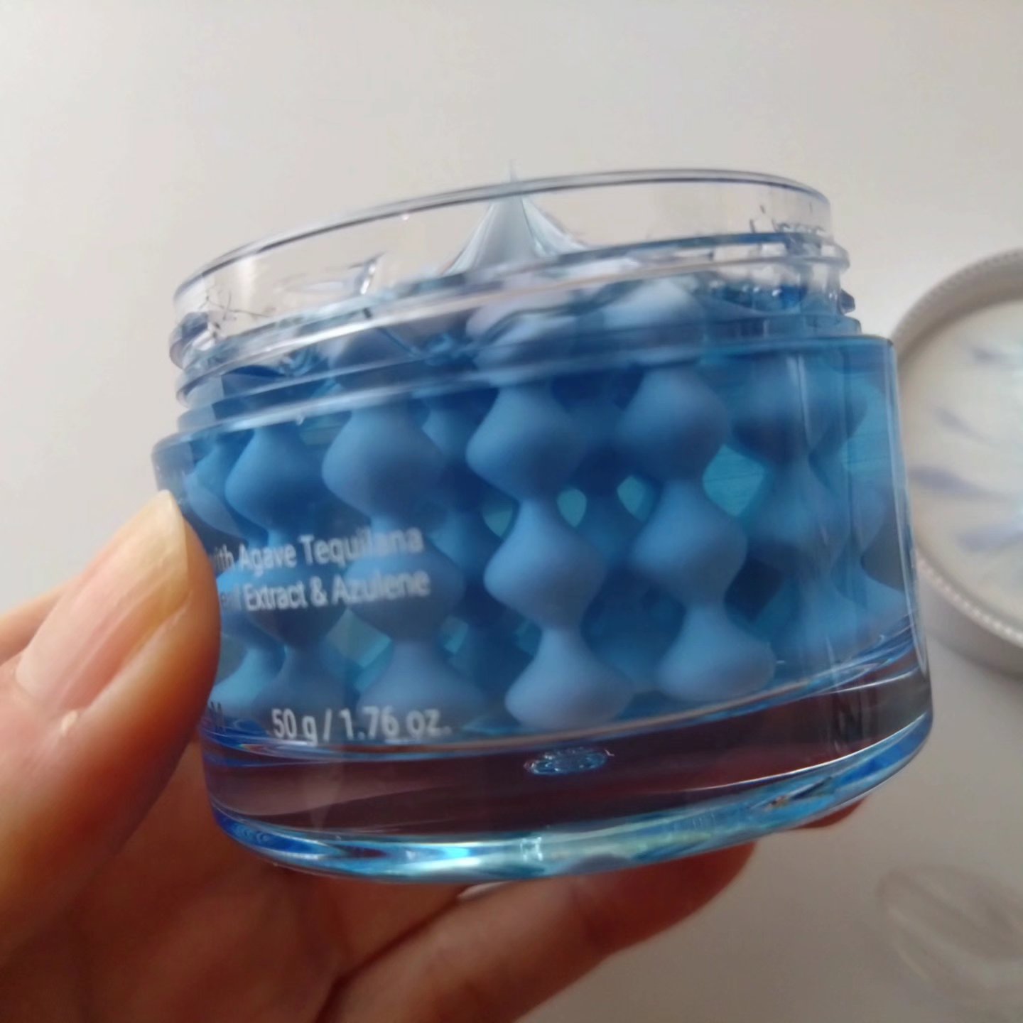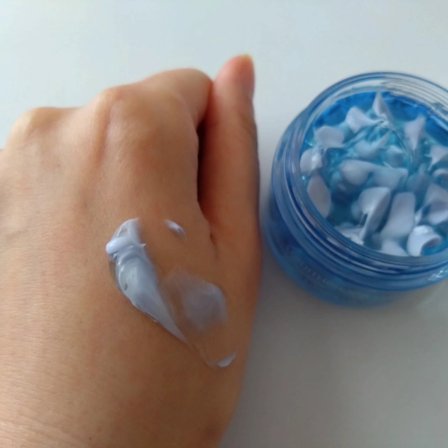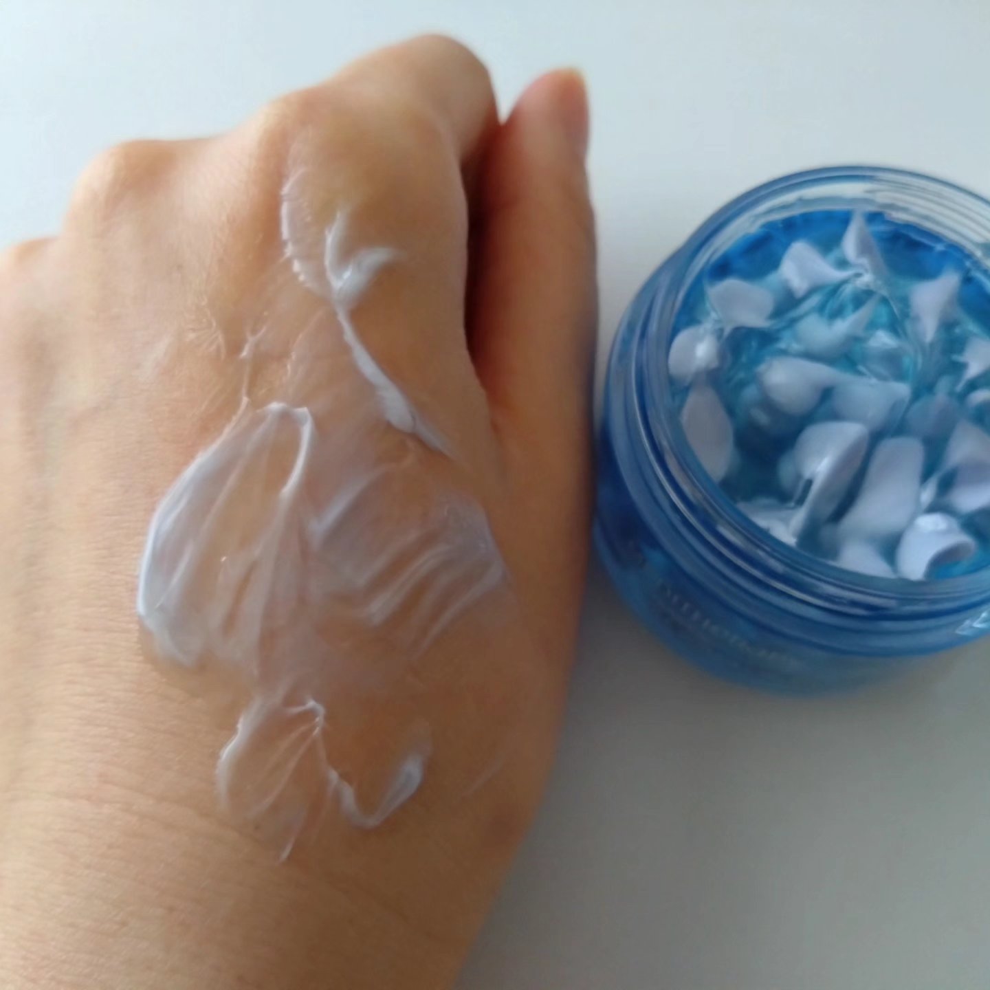見た目からしてもう優勝しているこのクリームは、メディテラピー様のブルーレイヤーダブルウォータークリームです! インナードライさんにおすすめのクリームです。見た目綺麗すぎ!! アズレンカプセル→インナードライをケア ブルーアガペ水分ジェル→カサつきをケアの二種類のテクスチャーが混ざっています。