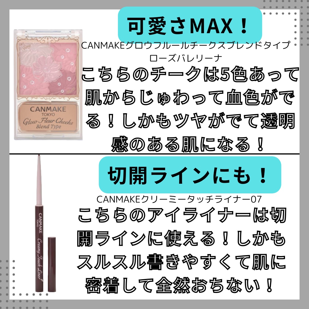 キャンメイクのコスメ自体がどれも優秀すぎておすすめ度の星をつけるのが難しかったです😳✨️ どれも★5にしたいくらい好きなコスメばっかり...!! それぞれのコスメで特におすすめのカラーをコスメ欄に載せているので、そのコスメのどのカラーを買うか悩んでいる人はぜひそこも見てみてください!