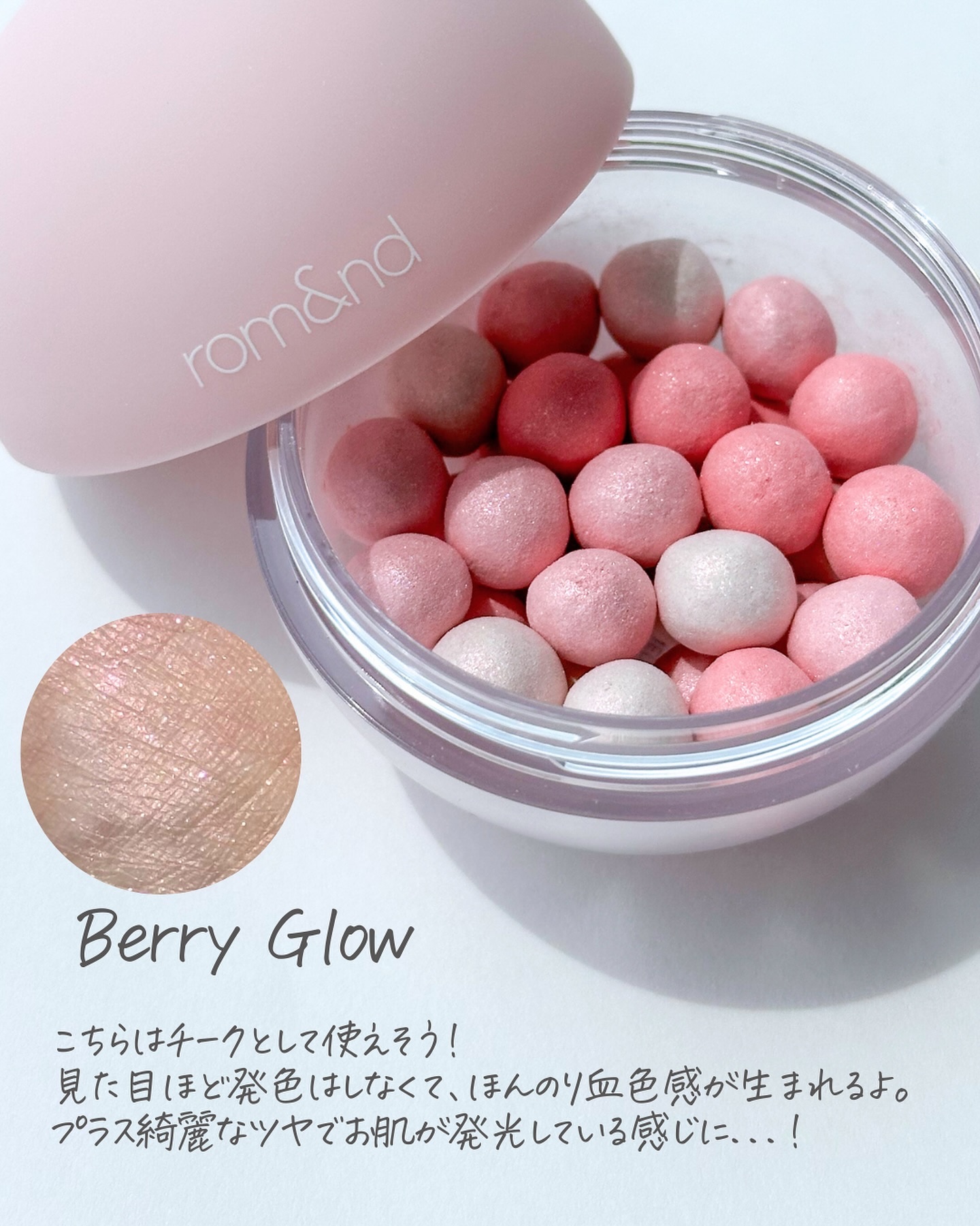 思っていたよりも小ぶりで手のひらサイズの可愛らしいサイズ感だなあという第一印象。 パウダーにはたっぷりのラメが配合されているのでお肌にのせると透明感溢れる仕上がりに。 全体的にホワイトやベージュカラーで構成されているのでハイライトカラーとしてのせるとお顔に輝きをしっかり集めてくれます! 所謂ほわほわ系のピンクに発色されます🩷