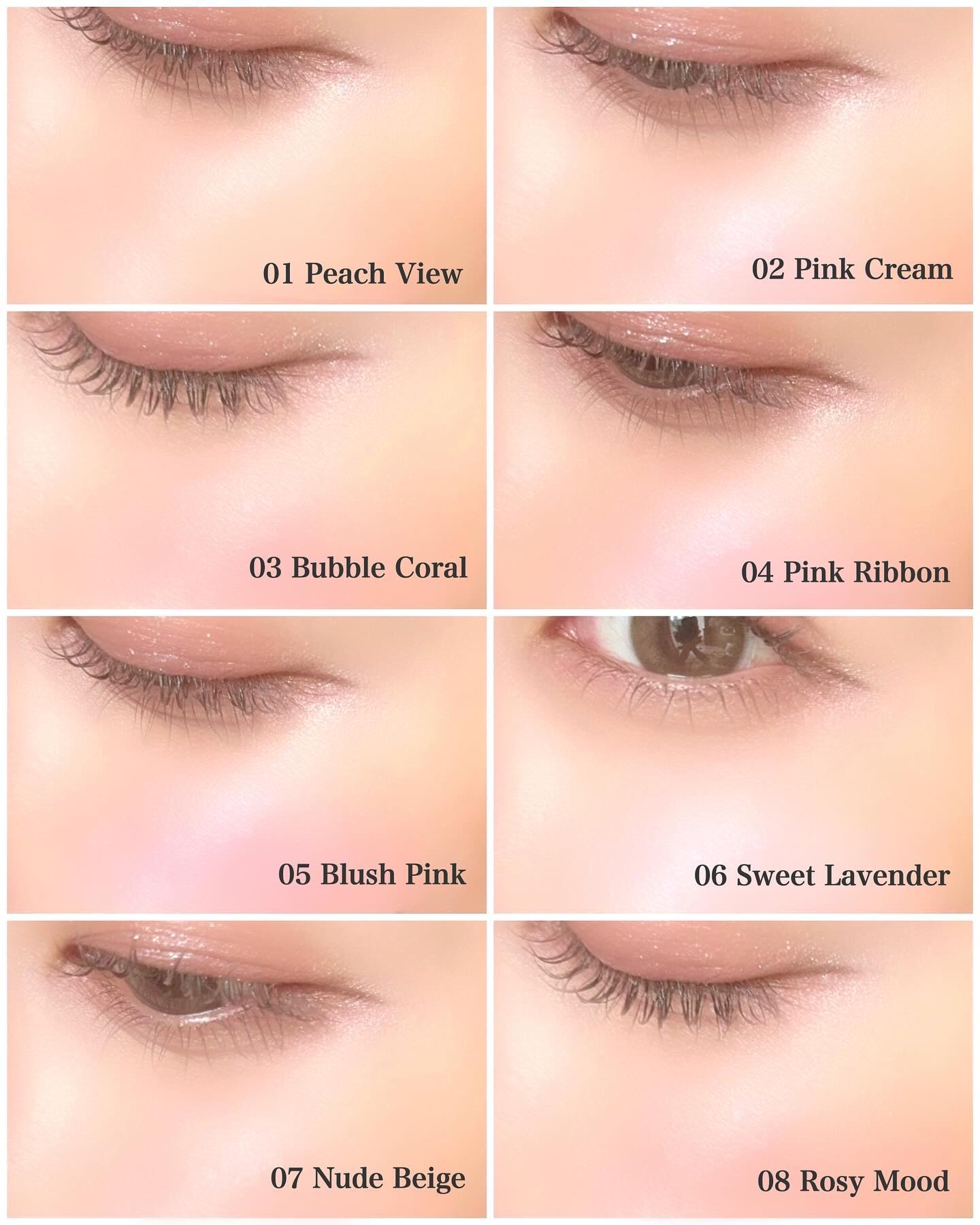 - シルキーで細かいパウダー粒子が両頬に透明にブレンディングされ、ナチュラルな生気に染まるシングルチーク イエベからブルべまで肌に合わせた 8種類の多彩なカラースペクトラムで頬を生き生きと染めてみてください