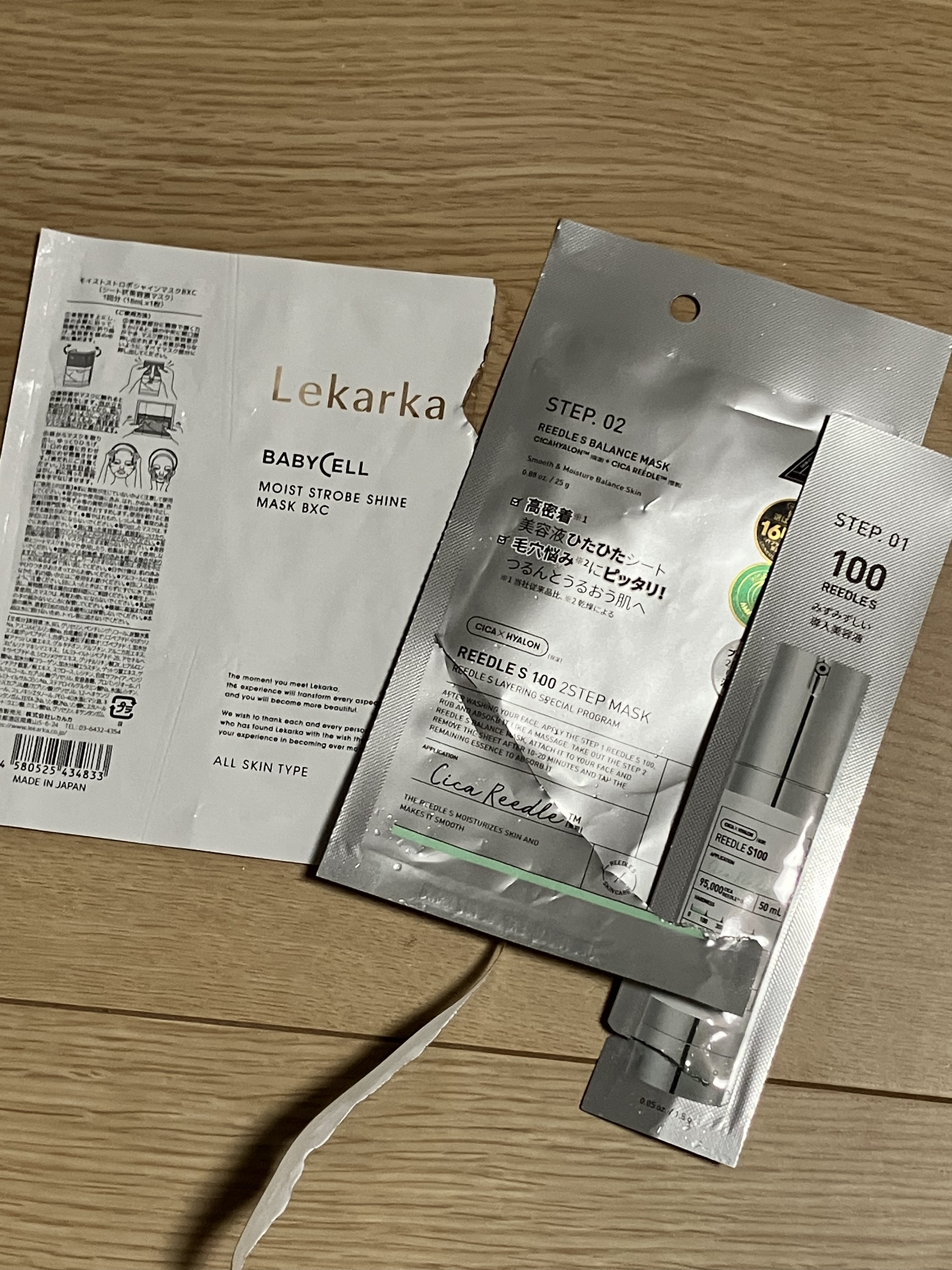 - <リードルS 100 2ステップマスク> 水、DPG、グリセリン、ナイアシンアミド、BG、マカデミア種子油、1,2-ヘキサンジオール、パルミチン酸エチルヘキシル、(アクリル酸Na/アクリロイルジメチルタウリンNa)コポリマー、ポリイソブテン、シリカ、グリセレス-26、エチルヘキシルグリセリン、カプリリルグリコール、アデノシン、ポリアクリル酸Na、ヒアルロン酸Na、ツボクサエキス、(カプリリル/カプリル)グルコシド、オレイン酸ソルビタン、キサンタンガム、プロポリスエキス、アシアチコシド、マデカッソシド、マデカシン酸、アシアチン酸、グリシン、セリン、グルタミン酸、アスパラギン酸、ロイシン、アラニン、リシン、アルギニン、チロシン、フェニルアラニン、トレオニン、プロリン、バリン、イソロイシン、ヒスチジン、メチオニン、システイン、イソペンチルジオール、ベタイン、ヒドロキシアセトフェノン、(アクリル酸ヒドロキシエチル/アクリロイルジメチルタウリンNa)コポリマー、(アクリロイルジメチルタウリンアンモニウム/VP)コポリマー、オリーブ果実油、アラントイン、シア脂、トリ(カプリル酸/カプリン酸)グリセリル、水添レシチン、スクワラン、EDTA-2Na、イソステアリン酸ソルビタン、セラミドNP、コレステロール、ティーツリー葉エキス、フィトスフィンゴシン、オレイン酸、ステアリン酸、加水分解コラーゲン、トコフェロール、アブラナステロールズ