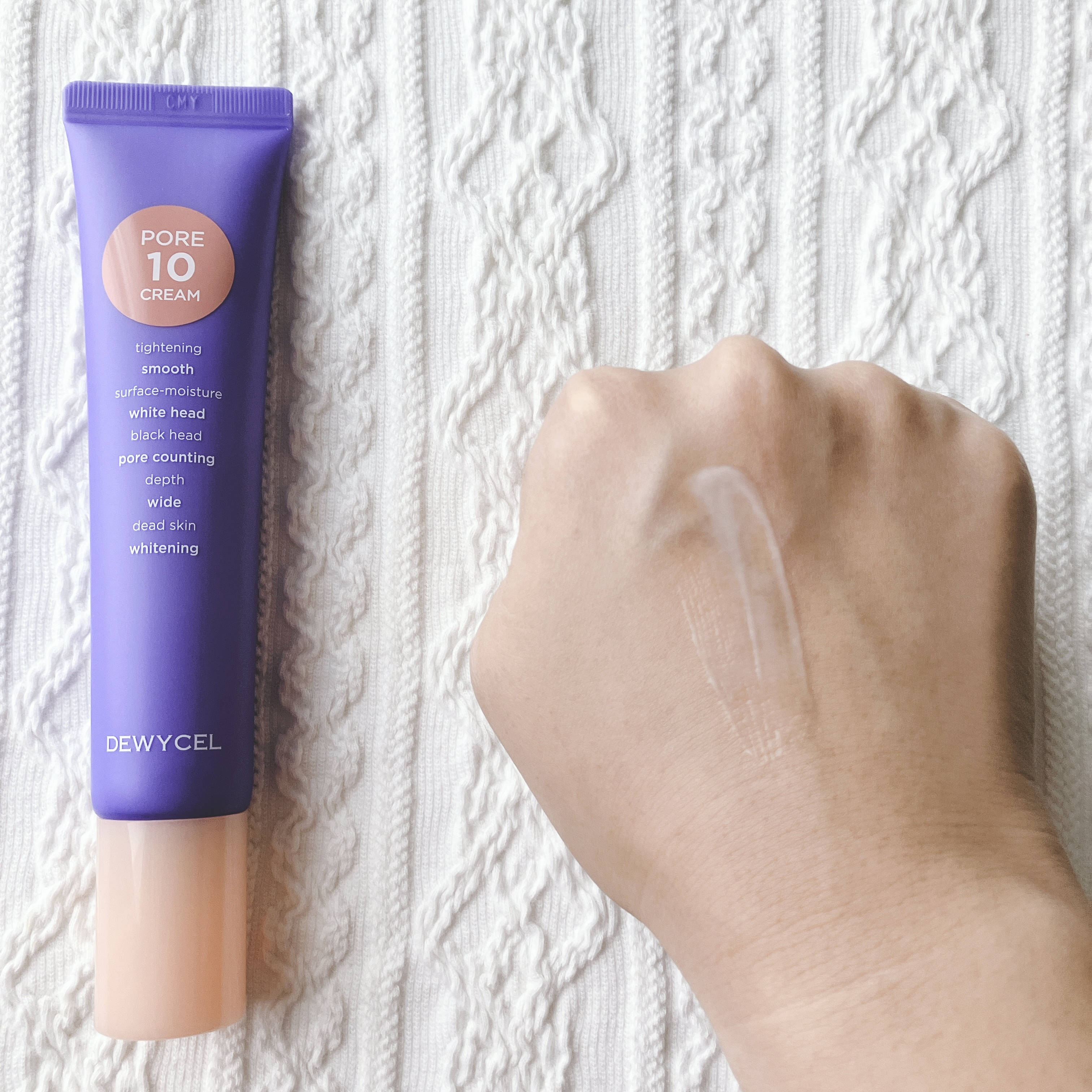 サラディパッドはエンボス加工の柔らかいコットン素材💜 凹凸がある面では角質を拭き取ったり平らな面では水分たっぷりの部分パックに使える✨ ポアテンクリームは伸びも良くしっとりしたクリームで乾燥しない◎ ベタつかないからメイク前に使いやすい🥰 どちらも良い匂いで使うたび癒される💐