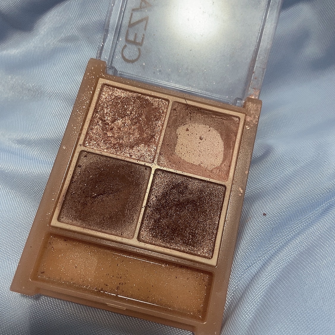 - ラメ・パール・マット3質感の4色アイシャドウ。 肌馴染みの良いベージュを基調としたカラー。ラメ・パール・マットの3質感を重ねて、自然にまぶたを強調し奥行のある大きな目元へ。 しっとり溶け込むような柔らかなパウダーなので、スルスル伸びてまぶたにピタッと密着。保湿成分(スクワラン・ホホバ種子油)配合。
