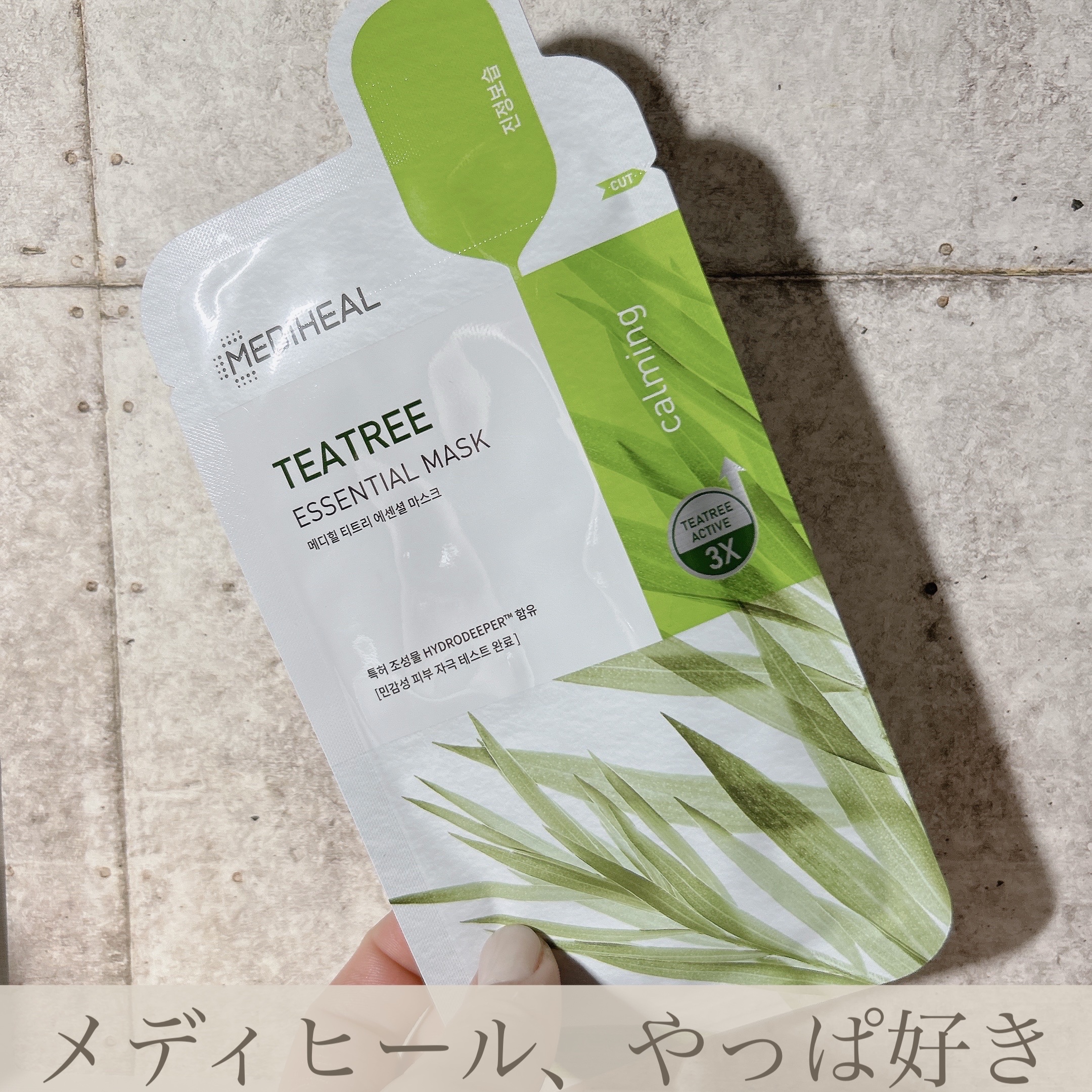 \一枚で解決❣️鎮静+水分補給🫧/♡MEDIHEALティーツリーエッセンシャルマスクカーミングモイスチャーニキビの時はティーツリー🌱油水分バランスを整え、肌を水分で満たしたい時にぴったりのパック🫧とにかく肌荒れしてる時やニキビができた時はティ...
