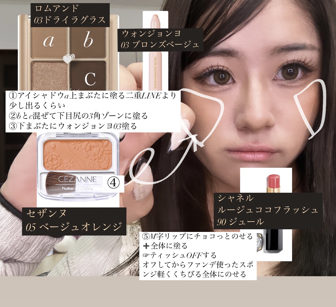 肌色は健康な肌色 リップはファンデを塗ってから軽く塗ってティッシュオフしてファンデまた付けることで薄めに❕ チークはオレンジ🧡🍊シェーディングのような役割にもなってます