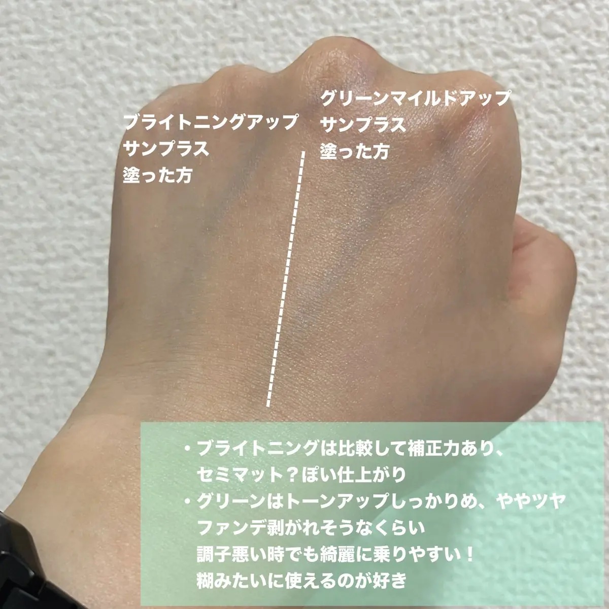 敏感肌向けノンケミカルタイプ🌿と血色感をプラスできるトーンアップタイプ☀ なめらかでかなり使いやすいよ🙆♀️🪄 無機系の日焼け止めだけど、不自然な白浮き感は少なめで使いやすさ◎ 化粧下地としてかなり重宝✌ どちらもべたつき感の少ない使用感の日焼け止め🙌