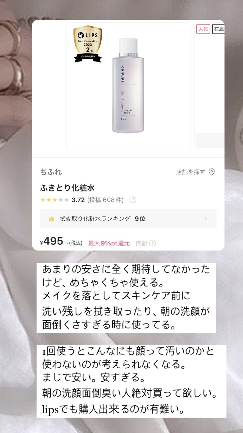 | スキンケアランキング第80位 | サラッとした拭き取り化粧水は朝、メイク前などにもピッタリ!使用感&価格が丁度よくてリピ𖤐 | 詳細を見る | |