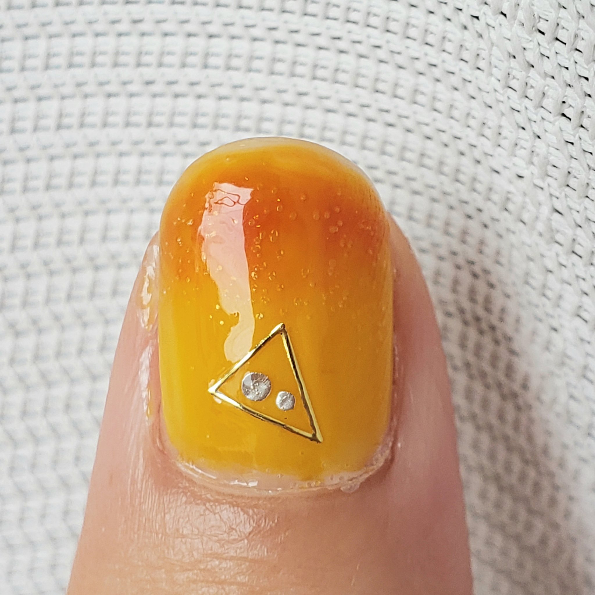 今日のネイル💅 コンセプトは「好きな色全部塗る」!! ✼••┈┈••✼••┈┈••✼••┈┈••✼••┈┈••✼ 【使ったもの】 ネイルホリック GR728 ネイルホリック YE503 ネイルホリック OR204 キャンメイク N29 ミルクシロップ レブロン ネイルエナメル490 paプラス ピールオフベースコート plus05 ネイリスト クイッククリスタルコートⅡ ACネイル クイックドライトップコート(ぼかし用) ネイルシール(SSHEINにて購入) 【やり方】 ⭐グラデーション 1.キャンメイク N29 ミルクシロップを2度塗り 2.ネイルホリック YE503を1度塗り 3.ネイルホリック YE503を爪の根元から3分の2くらいまで1度塗り 4.残り3分の1にネイルホリック OR204を1度塗り 5.ぼかし用のトップコートで境目をぼかして、グラデーションにする 6.シールを貼る 7.トップコートで仕上げ ⭐ワンカラー 1.ネイルホリック GR728とレブロン 490をそれぞれ2度塗り 2.シールを貼る 3.トップコートで仕上げ ✼••┈┈••✼••┈┈••✼••┈┈••✼••┈┈••✼ ……いいね! 好きな色を塗ると、やっぱりテンション上がる!! グラデーションが黄色とオレンジだから、 ちょっとひまわりっぽい? ネイビーが締め色になってよかった。 グラデーションはポリッシュを重ねすぎて、 ぽっこりしちゃったのと トップコートで縮んじゃったのが反省点。 気泡はもう諦めの境地。 今日のネイルは 好きな色を塗っただけなんだけど、 隠れたサブコンセプトとして、 黄色とオレンジのグラデーションを入れる ってのもあってね。 推しの色なのです… 今夜放送分のアニメで、 推しにつらいことが起こりそうで。 ちょっとでも応援したくて… 推し…がんばって…(´;ω;`) #セルフネイル #ネイル記録