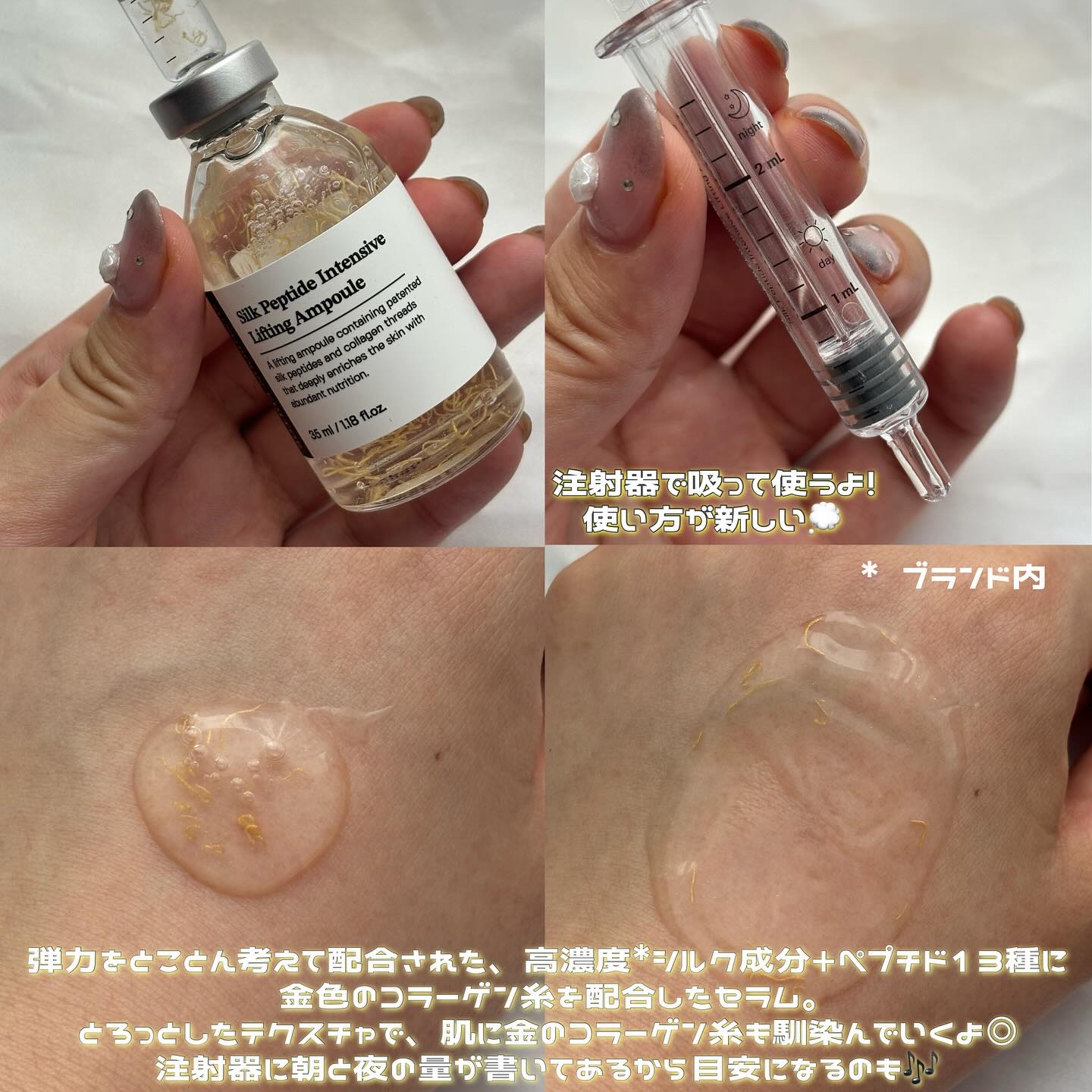 成分エディターシルクペプチドアンプル成分エディターを代表するアンプル🤍『塗る糸リフト』として話題になっていて気になっていました💓なんと言っても、ボトルの中に見える金色の糸が気になりますよね😂金色の糸は小じわをケアしてくれるコラーゲン糸*なんだ...