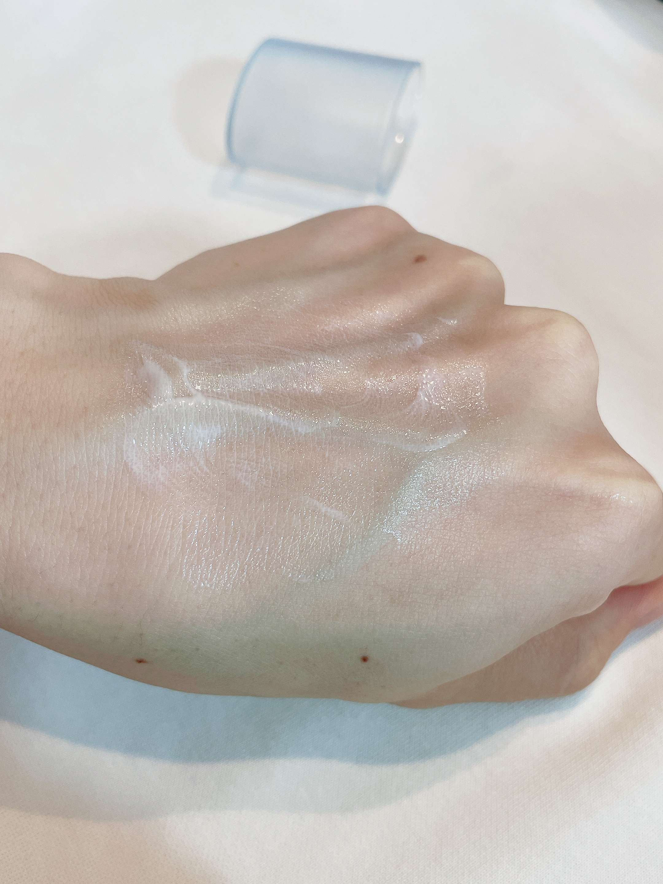 こちらの商品は香りもなくベタつきません! みずみずしくスルッとのびます! 白浮きしたりもしないので上からメイクをしても邪魔されず綺麗に仕上がります。 ポンプ式なので出しやすいのも良いです。