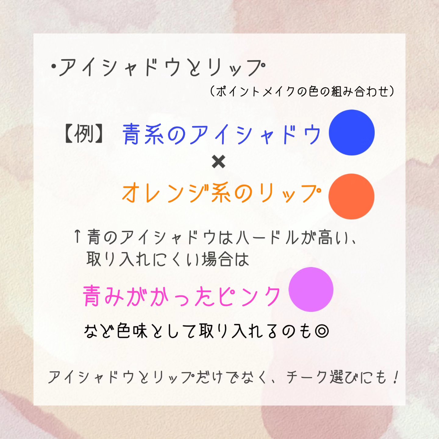 色相環を使って色の組み合わせ方を知ることでメイクの幅が広がるんです! 普段のメイクに取り入れてみたりイベントメイクなど特別な日に取り入れたい色の組み合わせ方があるので ぜひチャレンジしてみてはいかがでしょうか?