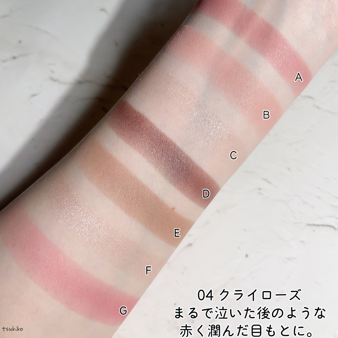 - <01 ソフトモーブピンク> マイカ、タルク、合成フルオロフロゴパイト、ジメチコン、トリエチルヘキサノイン、リンゴ酸ジイソステアリル、イソステアリン酸水添ヒマシ油、酸化鉄、酸化チタン、窒化ホウ素、ポリグリセリル-3ポリジメチルシロキシエチルジメチコン、ラウリン酸亜鉛、シリカ、ホウケイ酸(Ca/Al)、ステアリン酸ソルビタン、グンジョウ、メチルパラベン、赤226、銀、水酸化Al、赤202、酸化スズ、トコフェロール、スクワラン、ホホバ種子油 <02 トレンチブラウン> マイカ、タルク、合成フルオロフロゴパイト、トリエチルヘキサノイン、ジメチコン、酸化鉄、イソステアリン酸水添ヒマシ油、リンゴ酸ジイソステアリル、酸化チタン、窒化ホウ素、ポリグリセリル-3ポリジメチルシロキシエチルジメチコン、ラウリン酸亜鉛、シリカ、ホウケイ酸(Ca/Al)、メチルパラベン、ステアリン酸ソルビタン、グンジョウ、銀、水酸化Al、酸化スズ、トコフェロール、スクワラン、ホホバ種子油、赤226 <03 ブロッサムコーラル> 合成フルオロフロゴパイト、タルク、マイカ、ジメチコン、トリエチルヘキサノイン、酸化鉄、リンゴ酸ジイソステアリル、酸化チタン、イソステアリン酸水添ヒマシ油、窒化ホウ素、ポリグリセリル-3ポリジメチルシロキシエチルジメチコン、ラウリン酸亜鉛、ホウケイ酸(Ca/Al)、シリカ、ステアリン酸ソルビタン、メチルパラベン、グンジョウ、銀、赤226、水酸化Al、酸化スズ、トコフェロール、スクワラン、ホホバ種子油 <04 クライローズ> 合成フルオロフロゴパイト、タルク、マイカ、ジメチコン、リンゴ酸ジイソステアリル、トリエチルヘキサノイン、酸化鉄、イソステアリン酸水添ヒマシ油、酸化チタン、窒化ホウ素、ポリグリセリル-3ポリジメチルシロキシエチルジメチコン、ラウリン酸亜鉛、ホウケイ酸(Ca/Al)、シリカ、グンジョウ、ステアリン酸ソルビタン、メチルパラベン、赤202、赤226、銀、水酸化Al、トコフェロール、スクワラン、ホホバ種子油、コンジョウ、酸化スズ、金