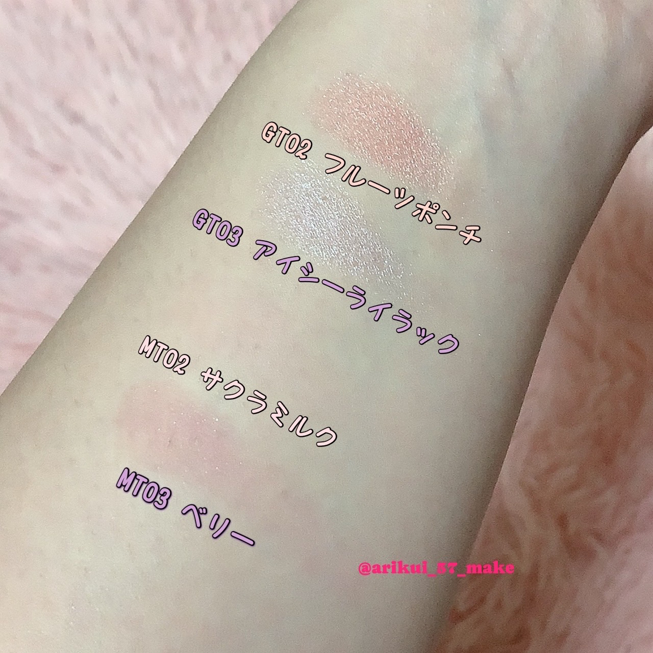 𓊆ㅤ似てるこの2色使ってアイメイク𓊇<使ったアイシャドウ>KATEザアイカラー052プラムピンク715円(税込)URGLAMPOWDEREYESHADOWフューシャ110円(税込)KATEエレクトリックショックアイズYL-1エレクトリックアン...