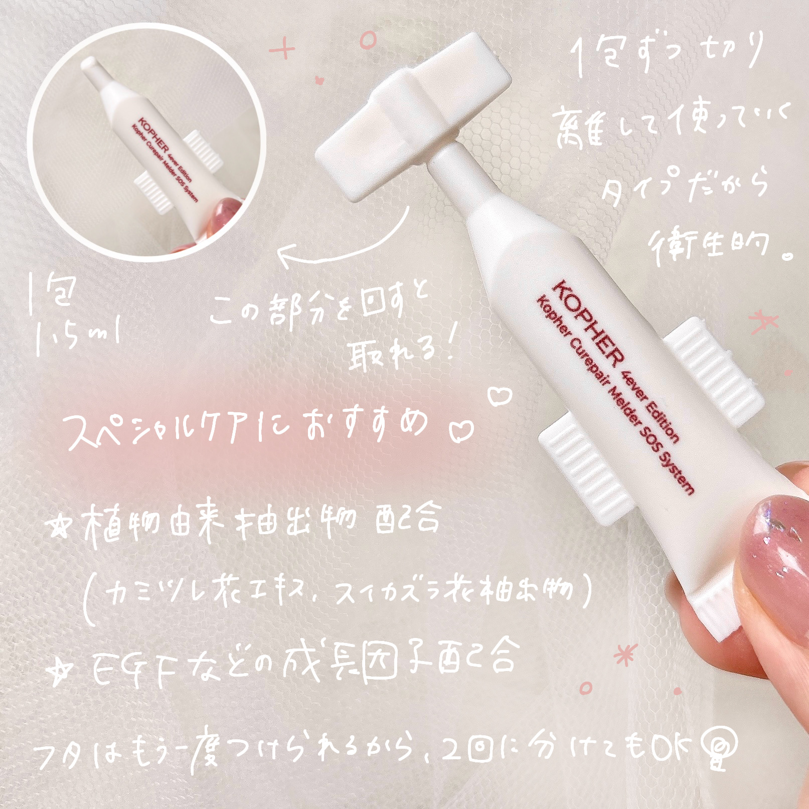 4年で850%成長したKopher! 個別パッケージで衛生的に使えて、手軽にスペシャルケアが出来るのは嬉しい♡ EGFを含む10種類の合成ペプチド(成長因子)配合 マトリカリア花、スイカズラ花エキスを配合 豪華な成分配合で保湿 肌荒れ防止 いざと言う時に使いたいクリーム