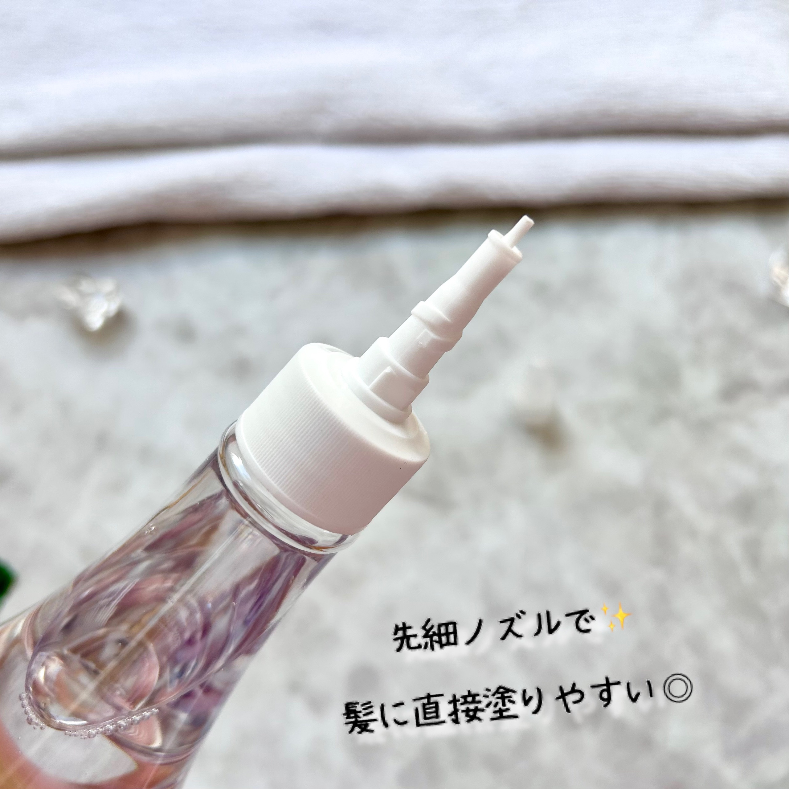 乾いた髪にしっとりするまでスプレーして 根元からドライヤーで乾かします。 ブローでつるサラ髪になれるから 忙しい朝も時短できて助かる~🙌 甘すぎず爽やかなフローラル&フルーティの香りがふわっと。