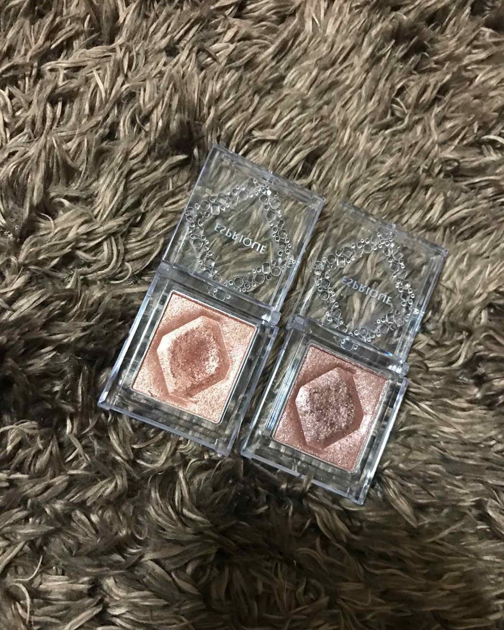 ダイヤモンドパウダー配合の贅沢な単色アイシャドウ💎 キラキラしてるけど派手感がなく、キープ力もあるのが嬉しい🌷 ピンク&オレンジみたいな可愛い色で、透明感のある華やかさだよ✿ 重ね塗りも楽しいけど、こちらのは単色使いでも十分なくらい綺麗😍 小さいからポーチに入れて持ち歩きも出来るし、購入して良かった🍀