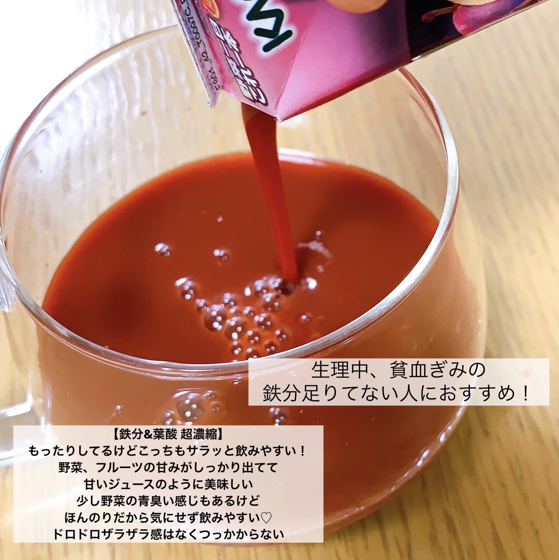 濃くておいしいからドハマり中😋💕 野菜350g分を濃縮! ●カルシウム&マグネシウム(緑)プチヴェールやケール等の30品目の野菜を使用。 味はトマトジュースベース🍅なのにほんのり甘いのでトマト苦手な方でも飲みやすいと思います🙆♀️