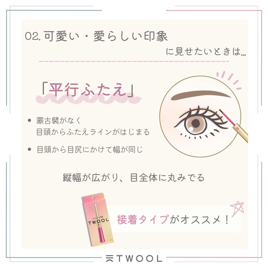 一重さん必見!~目のタイプ別アイメイクのポイント~タレ目さん、平行目さん、つり目さんそれぞれに似合うメイクのポイントを解説してみました✨他にも@twool_officialでは、アイメイクのハウツーやまぶたのケアに関する情報を発信中!参考にな...