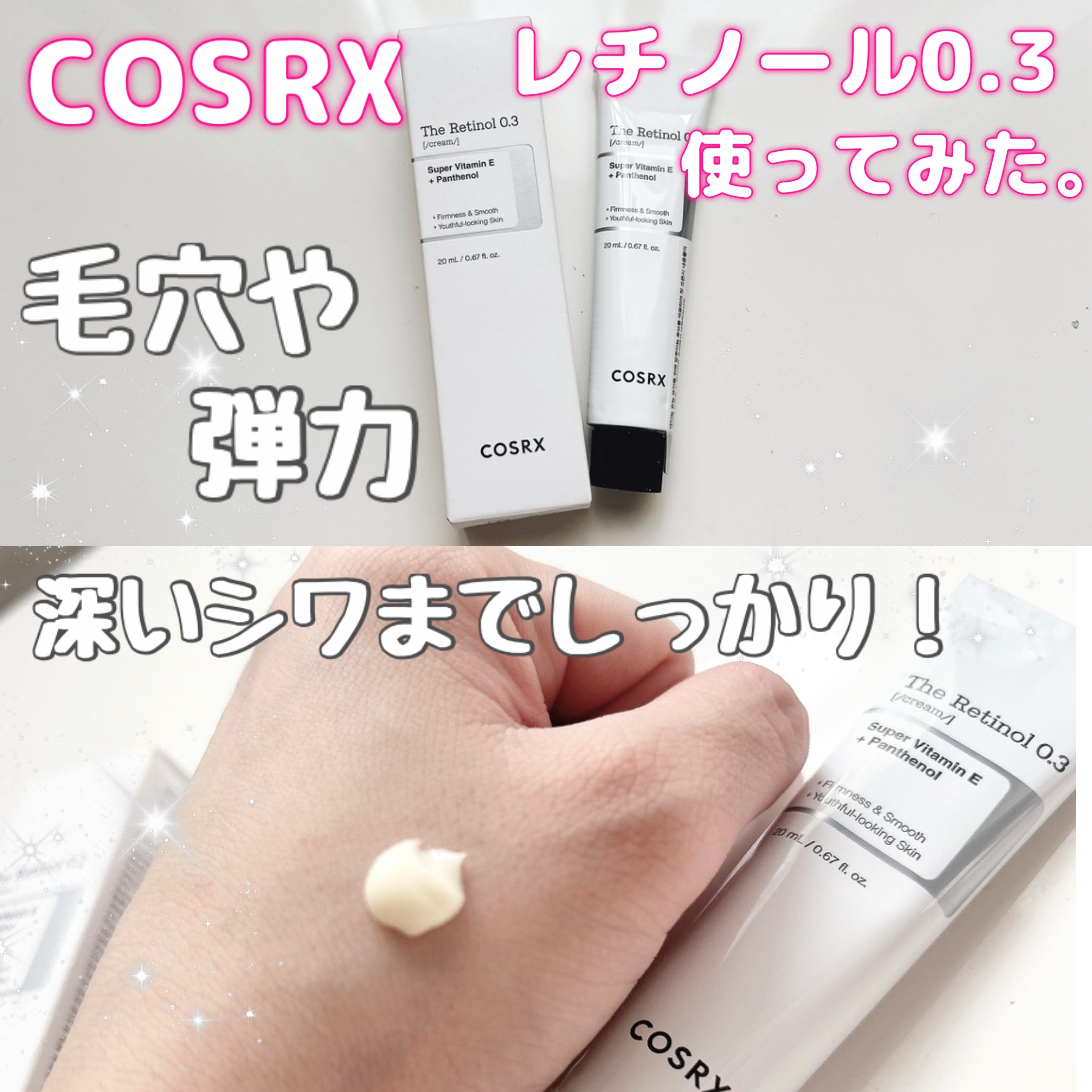 ■COSRXRXザ・レチノール0.3クリーム夜に高濃度ビタミンC美容液を使う日々に一区切りついたので夜レチ再開!冷蔵庫保管のスキンケアを片したいので再開早々に高濃度を投入する暴挙に出ました。以前LIPSで当選した0.1%クリームが良かったので...