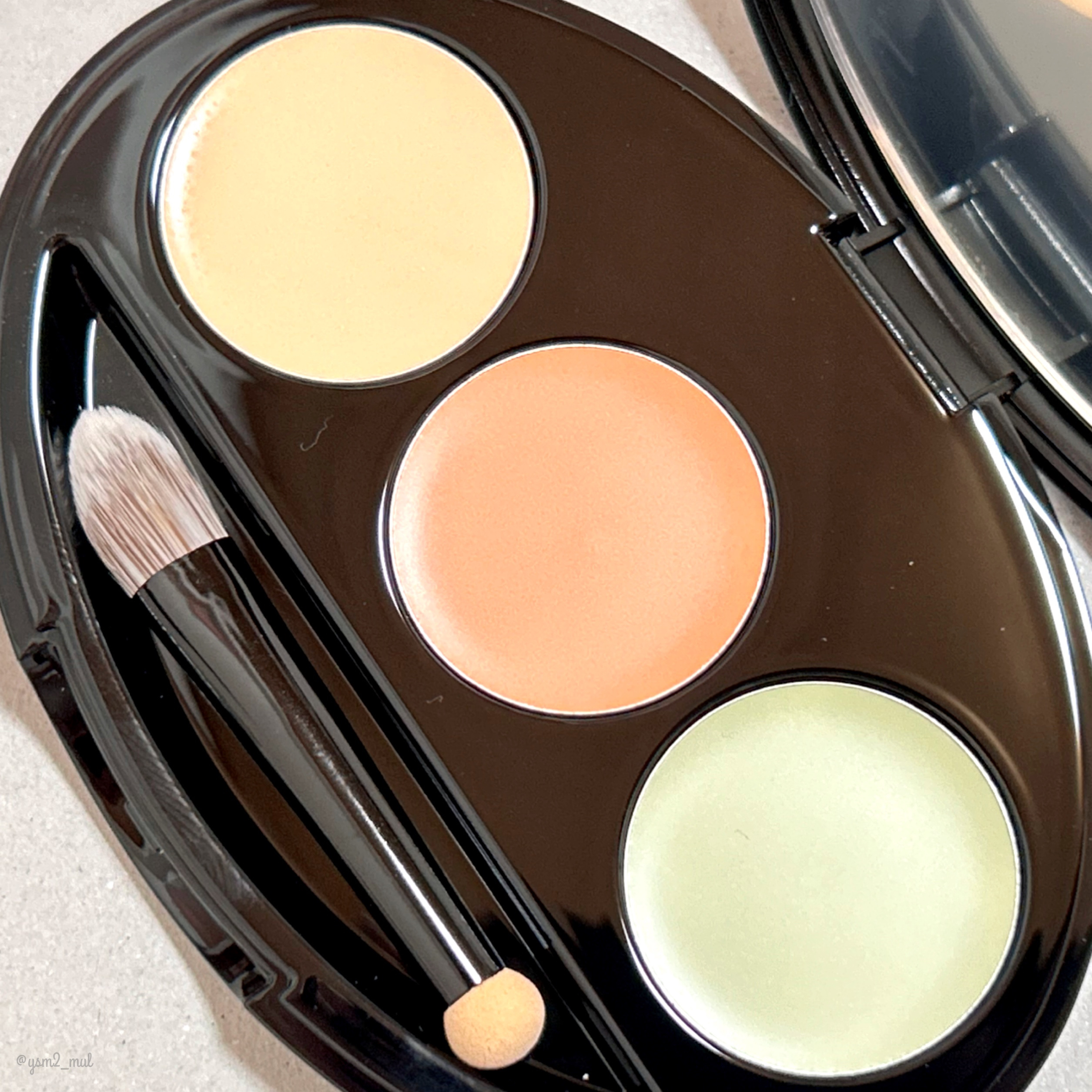 - 青みと赤みのカバーに最適なカラーコレクターと特許ヒアルロン酸を配合し、クリームのテクスチャーの保湿力を高め乾燥を防止するコンシーラーの3色パレット。これ1つでナチュラルなメイクアップが可能です。SPF50+ PA++++で紫外線からお肌を守ります。 ◇クマ, トラブル等の敏感肌のためのシーン別カバーソリューション! 厚塗りによるしわやひび割れが目立つ敏感肌向けの本格的なトラブルカバーソリューション! しっとりとしたスキンケアカバーで健康的な血色を演出します。 ◇2色のテクスチャーとクリーミーなコンシーラーでムラにならない重ね塗り 水分たっぷりのバームのようにしっとりと溶け込むエッセンステクスチャーのカラーと、しっかりと密着するクリームベースのコンシーラーは、重ね塗りでも厚くならず、自然にカバーしてくれます。 ◇肌悩みに合わせたスキンケア成分でカバーとケアが同時にできる 青クマ向けのサーモンDNA由来成分配合の「サーモンコーラル」のカラーと、赤み向けのシカ由来のオリーブミントカラーがお悩み部分のケアと共に自然な血色のようなカラー補正を行います。