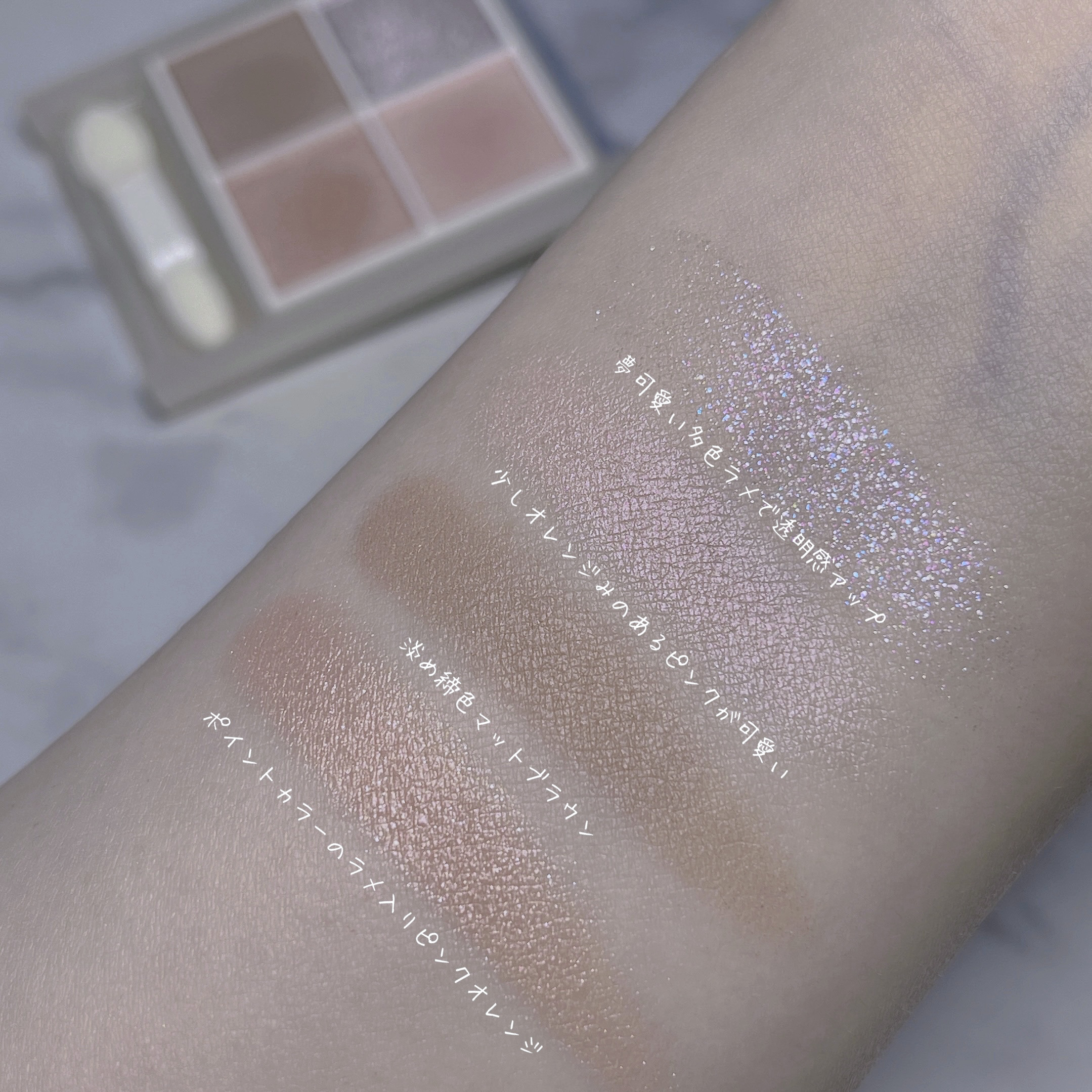 淡色グラデでソフトな印影を作る 4色アイシャドウ しっとり溶け込むような柔らかなパウダーがスルスル伸びてまぶたにピタッと密着 可愛いんだけど、ほんとに薄くて物足りない…