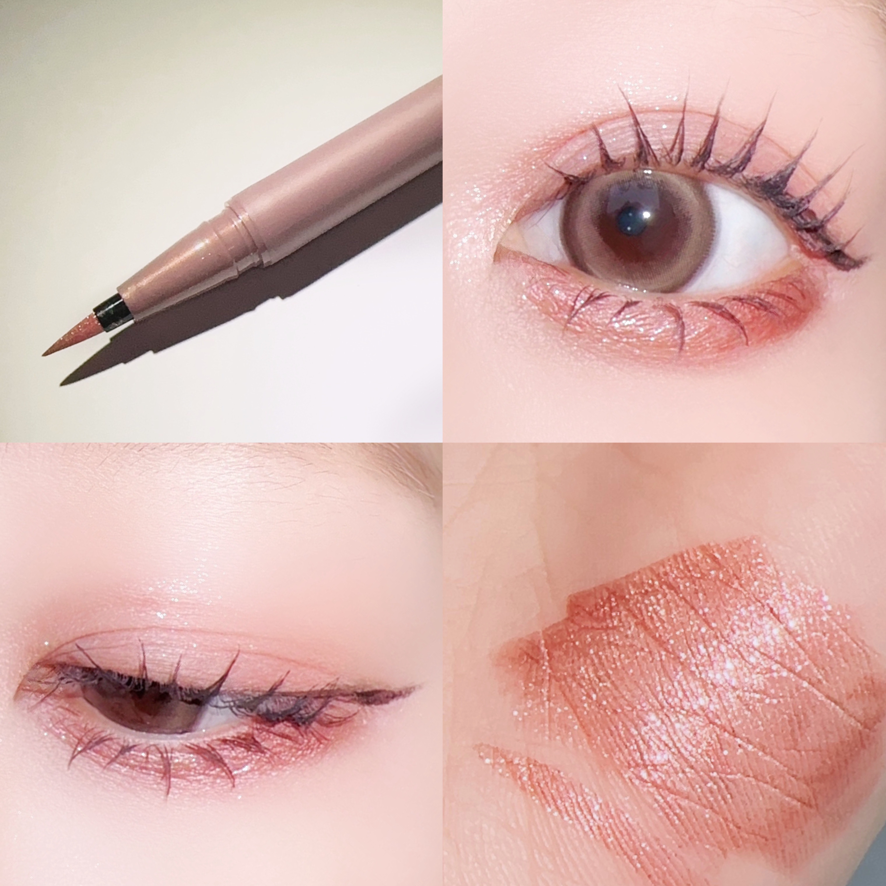繊細なラメが魅力的な透け感あるラメライナー🥹♡ バチバチに派手になるわけではなく、ナチュラルに馴染むから誰でも普段使いできる。 とにかく色味が可愛い。お湯落ちなのに水や汗に強いから長時間のメイクにも良いよ〜✌🏻 色味とラメ感が可愛いんだあ。切開ラインが私は似合わないけど目頭の内側?はいけるから、このライナーぴったりかも。