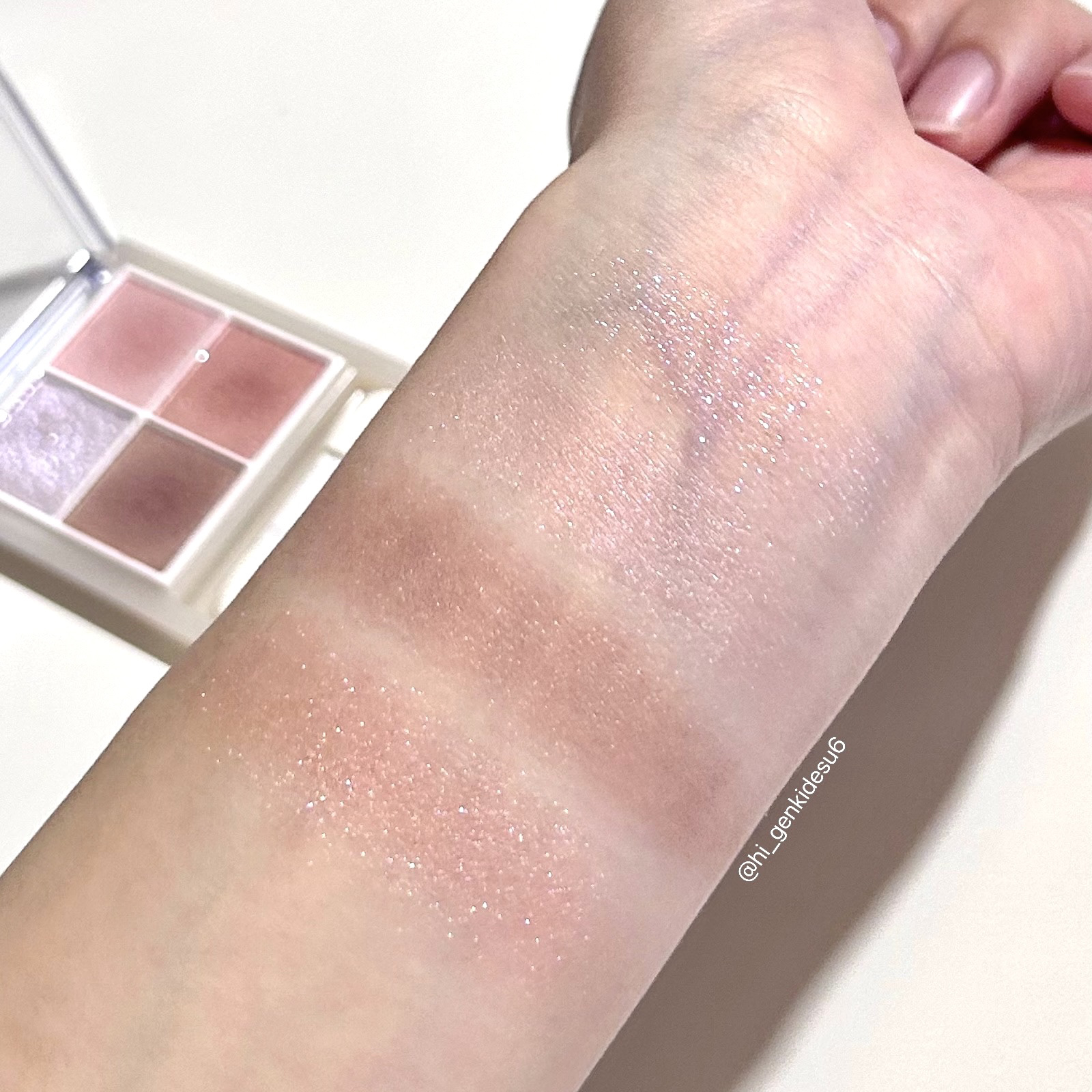 ぬるい温度のヌーディローズ。落ち着いた独特の雰囲気。公式写真だと青み寄りのローズピンクに見えましたが、私の肌だとアプリコットオレンジのような発色に。 清楚なラベンダーとミュートピンク。こちらは期待通りのクールトーンカラーでした! 白みのある発色で、塗った箇所がぱっと明るくなります。 簡単に統一感のあるメイクができてとっても優秀。色々な質感を試せますし、マルチに使用できるので1つでかなり活用度が高いパレットだと思います✨️