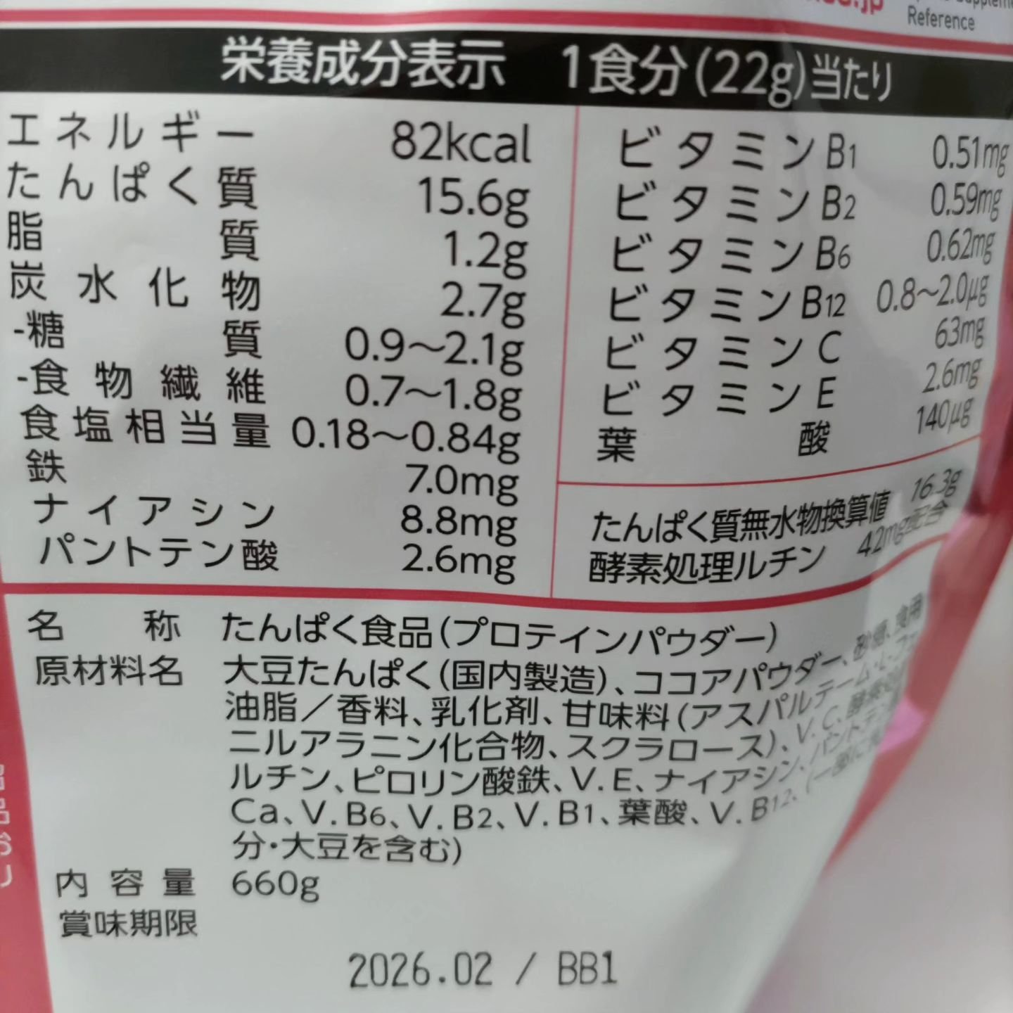 - <森永ココア味 264g> 大豆たんぱく(国内製造)、ココアパウダー、砂糖、食用油脂/香料、乳化剤、甘味料(アスパルテーム・Lーフェニルアラニン化合物、スクラロース)、V.C、ピロリン酸鉄、V.E、ナイアシン、パントテン酸Ca、V.B6、V.B2、V.B1、葉酸、V.B12、(一部に乳成分・大豆を含む) <森永ココア味 660g> 大豆たんぱく(国内製造)、ココアパウダー、砂糖、食用油脂/香料、乳化剤、甘味料(アスパルテーム・Lーフェニルアラニン化合物、スクラロース)、V.C、ピロリン酸鉄、V.E、ナイアシン、パントテン酸Ca、V.B6、V.B2、V.B1、葉酸、V.B12、(一部に乳成分・大豆を含む) <森永ココア味 880g> 大豆たんぱく(国内製造)、ココアパウダー、砂糖、食用油脂/香料、乳化剤、甘味料(アスパルテーム・Lーフェニルアラニン化合物、スクラロース)、V.C、ピロリン酸鉄、V.E、ナイアシン、パントテン酸Ca、V.B6、V.B2、V.B1、葉酸、V.B12、(一部に乳成分・大豆を含む) <ソイカカオ味 264g> 大豆たんぱく、ココアパウダー、砂糖、食用油脂/香料、乳化剤、甘味料(アスパルテーム・L-フェニルアラニン化合物、スクラロース)、V.C、酵素処理ルチン、ピロリン酸鉄、V.E、ナイアシン、パントテン酸Ca、V.B6、V.B2、V.B1、葉酸、V.B12、(一部に乳成分・大豆を含む) <ソイカカオ味 660g> 大豆たんぱく、ココアパウダー、砂糖、食用油脂/香料、乳化剤、甘味料(アスパルテーム・L-フェニルアラニン化合物、スクラロース)、V.C、酵素処理ルチン、ピロリン酸鉄、V.E、ナイアシン、パントテン酸Ca、V.B6、V.B2、V.B1、葉酸、V.B12、(一部に乳成分・大豆を含む) <ソイミルク味 660g> 大豆たんぱく(国内製造)、砂糖、食用油脂/香料(乳由来)、乳化剤、V.C、甘味料(アスパルテーム・L-フェニルアラニン化合物、スクラロース)、酵素処理ルチン、ピロリン酸鉄、V.E、ナイアシン、パントテン酸Ca、V.B6、V.B2、V.B1、葉酸、V.B12