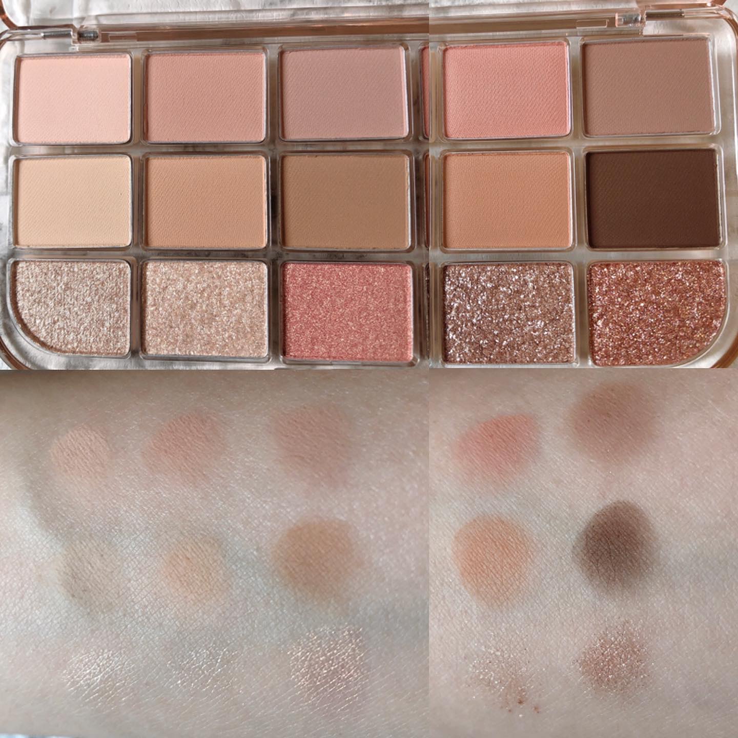全6色展開✨モアムードアイパレット💓 〜ヌードの奥ゆかしい雰囲気と血色感が共存〜 ピンクヌードカラー・イエローヌードカラーと2つのカラーが入ってて、ヌード系だけでも色んなパターンのアイメイクが楽しめるよっっ✨ 粉質はサラサラしてて好みの粉質✨ 粉飛び・ラメ飛びもなくよかったよ🙆♀️💕