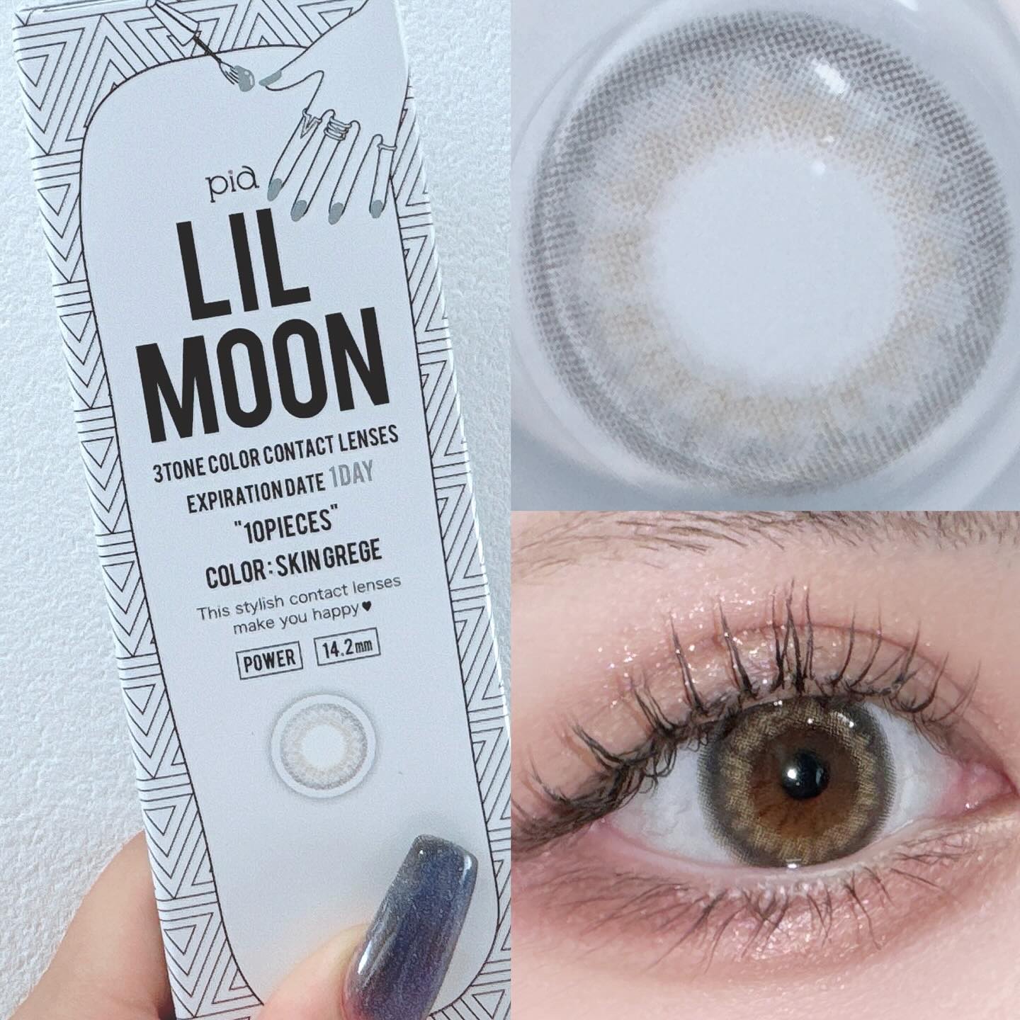 付け心地もデザインも色も好みです🫶🏻リルムーンのこのシリーズが付け心地抜群で一日快適につけるから大好きなんだけど色味・デザインもめっちゃ可愛い😭💗サンドグレーは放射線状のデザインになってて瞳が立体的に見えるのが可愛い!!しかも絶妙なグレ...