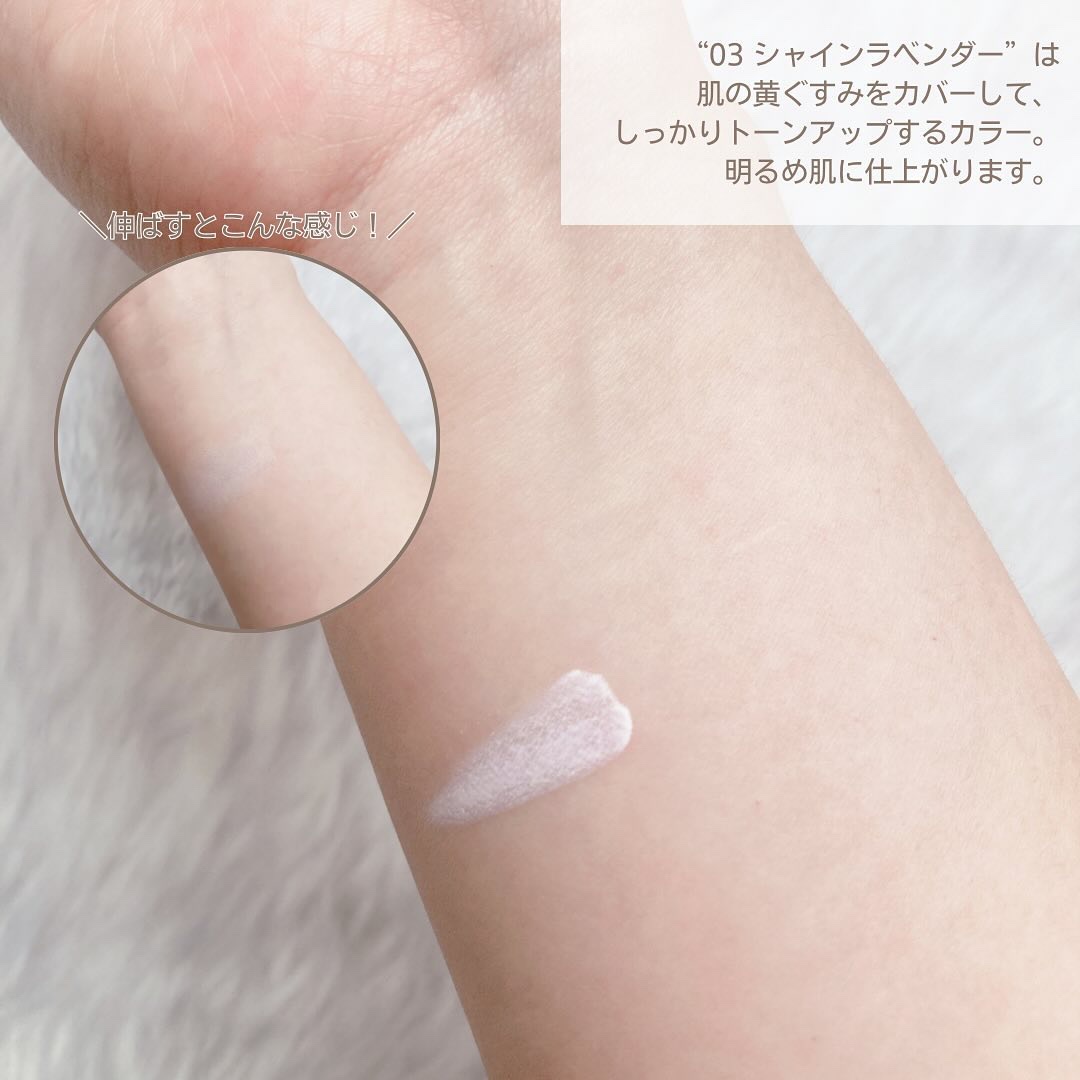 - <01 シャインピンク(ディズニーデザイン)> 酸化亜鉛、水、酸化チタン、BG、スクワラン、メタクリル酸メチルクロスポリマー、水酸化Al、酸化鉄、ステアリン酸、トリエトキシカプリリルシラン、イソドデカン、ジステアルジモニウムヘクトライト、パンテノール、硫酸Mg、1,2-ヘキサンジオール、アラントイン、イソノナン酸イソノニル、イソステアリン酸ソルビタン、ナイアシンアミド、プルラン、アデノシン、マルトデキストリン、メチルトリメチコン、ジ(カプリル/カプリン酸)BG、イソステアリン酸ポリグリセリル-4、ナイロン-12、β-グルカン、カプリリルメチコン、ネオペンタン酸イソデシル、マスチック樹脂、フルクトオリゴ糖、ポリリシノレイン酸ポリグリセリル-3、(アクリレーツ/メタクリル酸ポリトリメチルシロキシ)コポリマー、サリチル酸ブチルオクチル、(カプリル酸/カプリン酸)グリセリズ、リシノレイン酸ポリグリセリル-3、オキシ塩化ビスマス <02 シャインホワイト> 水、サリチル酸ブチルオクチル、酸化亜鉛、酸化チタン、BG、ネオペンタン酸イソデシル、メチルトリメチコン、ジ(カプリル/カプリン酸)BG、ポリリシノレイン酸ポリグリセリル-3、メタクリル酸メチルクロスポリマー、ナイアシンアミド、イソノナン酸イソノニル、カプリリルメチコン、イソステアリン酸ポリグリセリル-4、合成フルオロフロゴパイト、硫酸Mg、ナイロン-12、水酸化Al、イソドデカン、(カプリル酸/カプリン酸)グリセリズ、ステアリン酸、マイカ、ジステアルジモニウムヘクトライト、イソステアリン酸ソルビタン、(アクリレーツ/メタクリル酸ポリトリメチルシロキシ)コポリマー、トリエトキシカプリリルシラン、1,2-ヘキサンジオール、リシノレイン酸ポリグリセリル-3、アデノシン、スクワラン、アラントイン、パンテノール、プルラン、フルクトオリゴ糖、β-グルカン、マルトデキストリン、マスチック樹脂 <02 シャインホワイト(ディズニーデザイン)> 酸化亜鉛、水、酸化チタン、BG、スクワラン、メタクリル酸メチルクロスポリマー、水酸化Al、酸化鉄、ステアリン酸、トリエトキシカプリリルシラン、イソドデカン、ジステアルジモニウムヘクトライト、パンテノール、硫酸Mg、1,2-ヘキサンジオール、アラントイン、イソノナン酸イソノニル、イソステアリン酸ソルビタン、ナイアシンアミド、プルラン、アデノシン、マルトデキストリン、メチルトリメチコン、ジ(カプリル/カプリン酸)BG、イソステアリン酸ポリグリセリル-4、ナイロン-12、β-グルカン、カプリリルメチコン、ネオペンタン酸イソデシル、マスチック樹脂、フルクトオリゴ糖、ポリリシノレイン酸ポリグリセリル-3、(アクリレーツ/メタクリル酸ポリトリメチルシロキシ)コポリマー、サリチル酸ブチルオクチル、(カプリル酸/カプリン酸)グリセリズ、リシノレイン酸ポリグリセリル-3、オキシ塩化ビスマス <03 シャインラベンダー> 水、サリチル酸ブチルオクチル、酸化亜鉛、酸化チタン、ネオペンタン酸イソデシル、メチルトリメチコン、BG、ジ(カプリル/カプリン酸)BG、ポリリシノレイン酸ポリグリセリル-3、メタクリル酸メチルクロスポリマー、ナイアシンアミド、イソノナン酸イソノニル、カプリリルメチコン、イソステアリン酸ポリグリセリル-4、硫酸Mg、ナイロン-12、水酸化Al、イソドデカン、(カプリル酸/カプリン酸)グリセリズ、ステアリン酸、ジステアルジモニウムヘクトライト、イソステアリン酸ソルビタン、(アクリレーツ/メタクリル酸ポリトリメチルシロキシ)コポリマー、トリエトキシカプリリルシラン、1,2-ヘキサンジオール、リシノレイン酸ポリグリセリル-3、カオリン、アデノシン、スクワラン、アラントイン、パンテノール、プルラン、フルクトオリゴ糖、β-グルカン、マルトデキストリン、マスチック樹脂、グンジョウ、酸化鉄 <03 シャインラベンダー(ディズニーデザイン)> 酸化亜鉛、水、酸化チタン、BG、スクワラン、メタクリル酸メチルクロスポリマー、水酸化Al、酸化鉄、ステアリン酸、トリエトキシカプリリルシラン、イソドデカン、ジステアルジモニウムヘクトライト、パンテノール、硫酸Mg、1,2-ヘキサンジオール、アラントイン、イソノナン酸イソノニル、イソステアリン酸ソルビタン、ナイアシンアミド、プルラン、アデノシン、マルトデキストリン、メチルトリメチコン、ジ(カプリル/カプリン酸)BG、イソステアリン酸ポリグリセリル-4、ナイロン-12、β-グルカン、カプリリルメチコン、ネオペンタン酸イソデシル、マスチック樹脂、フルクトオリゴ糖、ポリリシノレイン酸ポリグリセリル-3、(アクリレーツ/メタクリル酸ポリトリメチルシロキシ)コポリマー、サリチル酸ブチルオクチル、(カプリル酸/カプリン酸)グリセリズ、リシノレイン酸ポリグリセリル-3、オキシ塩化ビスマス