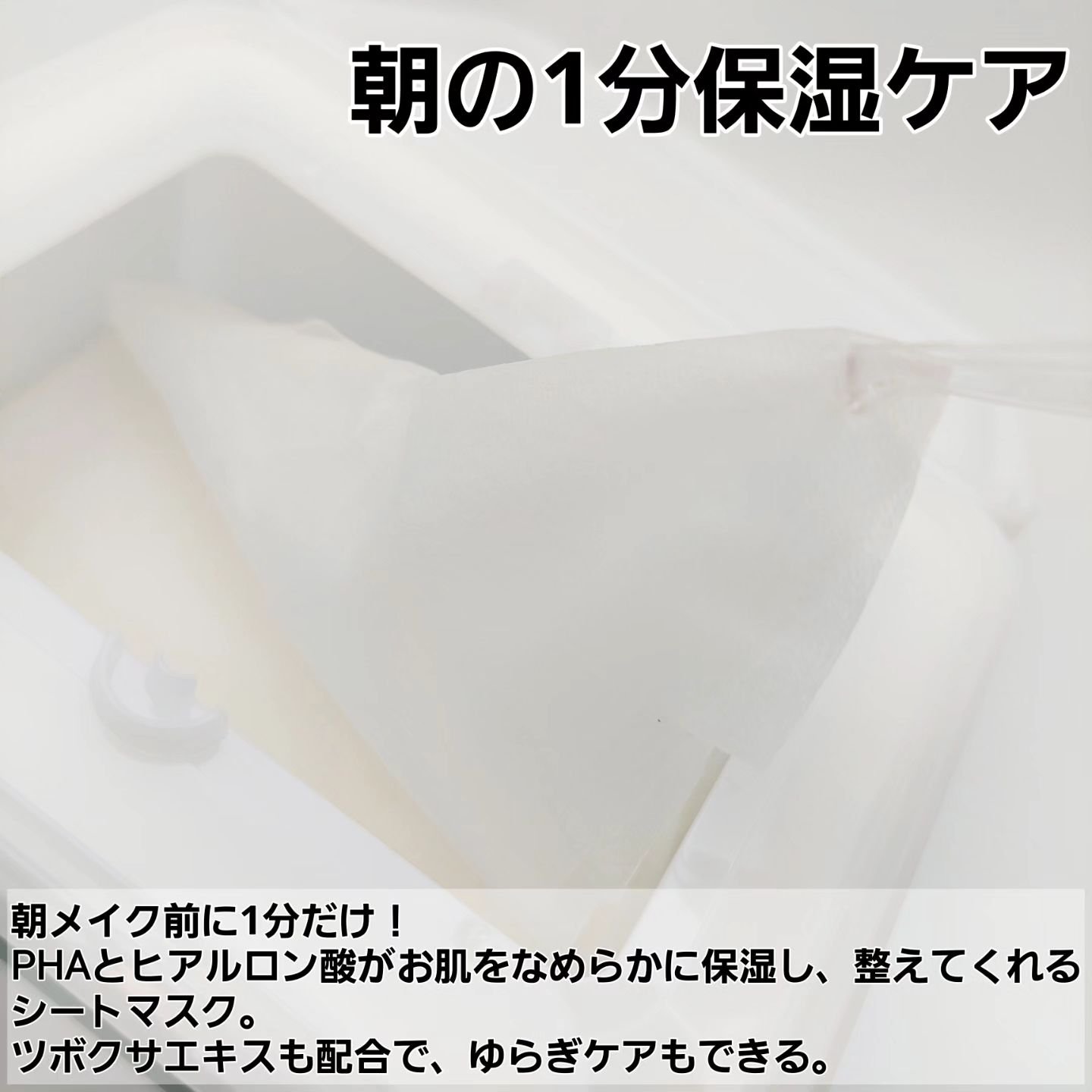- たったの1分*!整肌水分ケア! 角質柔軟成分であるPHAで、肌の不要な角質をケアし、陶器肌のような、朝の使用で化粧崩れをしにくいなめらかな肌に整えます。 また、肌を整えてくれるシカ成分が5種入っており、外部からの刺激による肌荒れや乾燥を防いでくれます。 さらに、毛穴より200倍も小さくしたカプセルに、11種類ものヒアルロン酸をぎゅっと詰め込み、肌の角質層まで潤いを与えるので、夏場のエアコンによる乾燥も、冬場のひどい乾燥もケア! マスクパックは、朝も夜も使えますが、特に、朝のメイク前に使うのがおすすめです! 簡単に短い時間*で、長時間なめらかな肌を保ちます。 *お手入れの目安時間