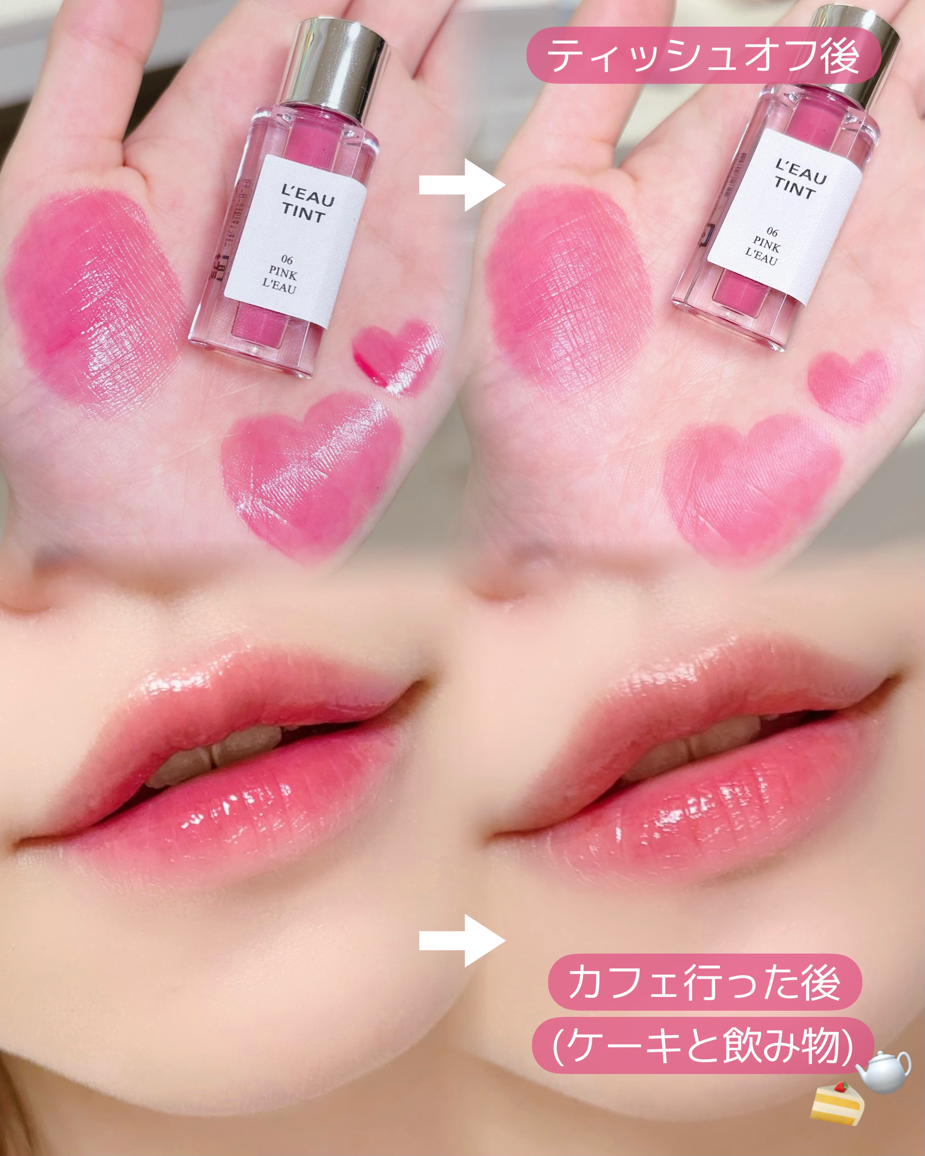 友達が新大久保のお店でセールやってるから買う?と聞いてくれて、定価の半額で買えました🙌 しっとりとしているし、ティッシュオフしてもしっかり色が持続してコップなどに付かずに済むので、飲み会リップと言われるだけあって色持ち抜群です❣️ ボトルデザインも香水瓶みたいで可愛くて、ラベルが布なのがおしゃれ!!