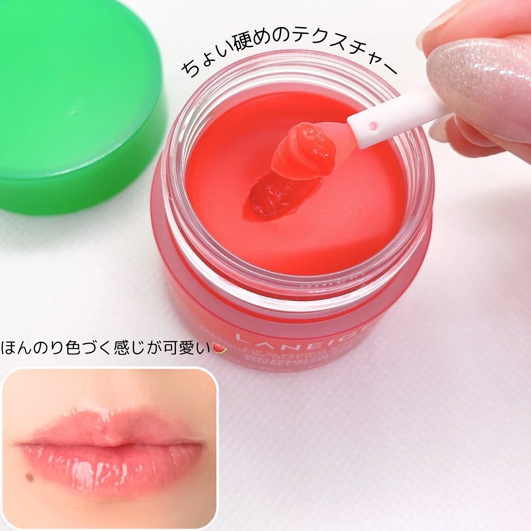 - 寝ている間にケアしてふっくらぷるぷるにうるおった唇へ。 2015年の初代発売以降、世界で2秒に1個売れている*¹LANEIGE大ヒットシリーズ *¹ 2024年グローバル販売実績 1.角質にアプローチするBerryFruitComplex (ベリーフルーツコンプレックス)*²が、 寝ている間に気になる乾燥や角質にうるおいを与え、つやのあるふっくらとうるおった唇に仕上げます。 *²ザクロ果実エキス、ブドウ果実エキス、ラズベリー果実エキス 2.ココナッツオイル(ヤシ油)を配合で、うるおいをあたえ睡眠中の乾燥を防ぎます。 3.今夜はどんな気分?5つのフレーバーから選べるワクワク感。 ■テクスチャー:やさしく馴染むなめらかなバームタイプ ■アレルギーテスト済み*³ *³全ての方にアレルギーが起こらないということではありません。 ■使用方法 寝る前に唇にたっぷり塗り、そのままお休みください。 翌朝、軽くティッシュオフします。付属のスパチュラで塗ることで、より唇の角質に馴染みやすくなります。 日中のリップトリートメントにも使用できます。