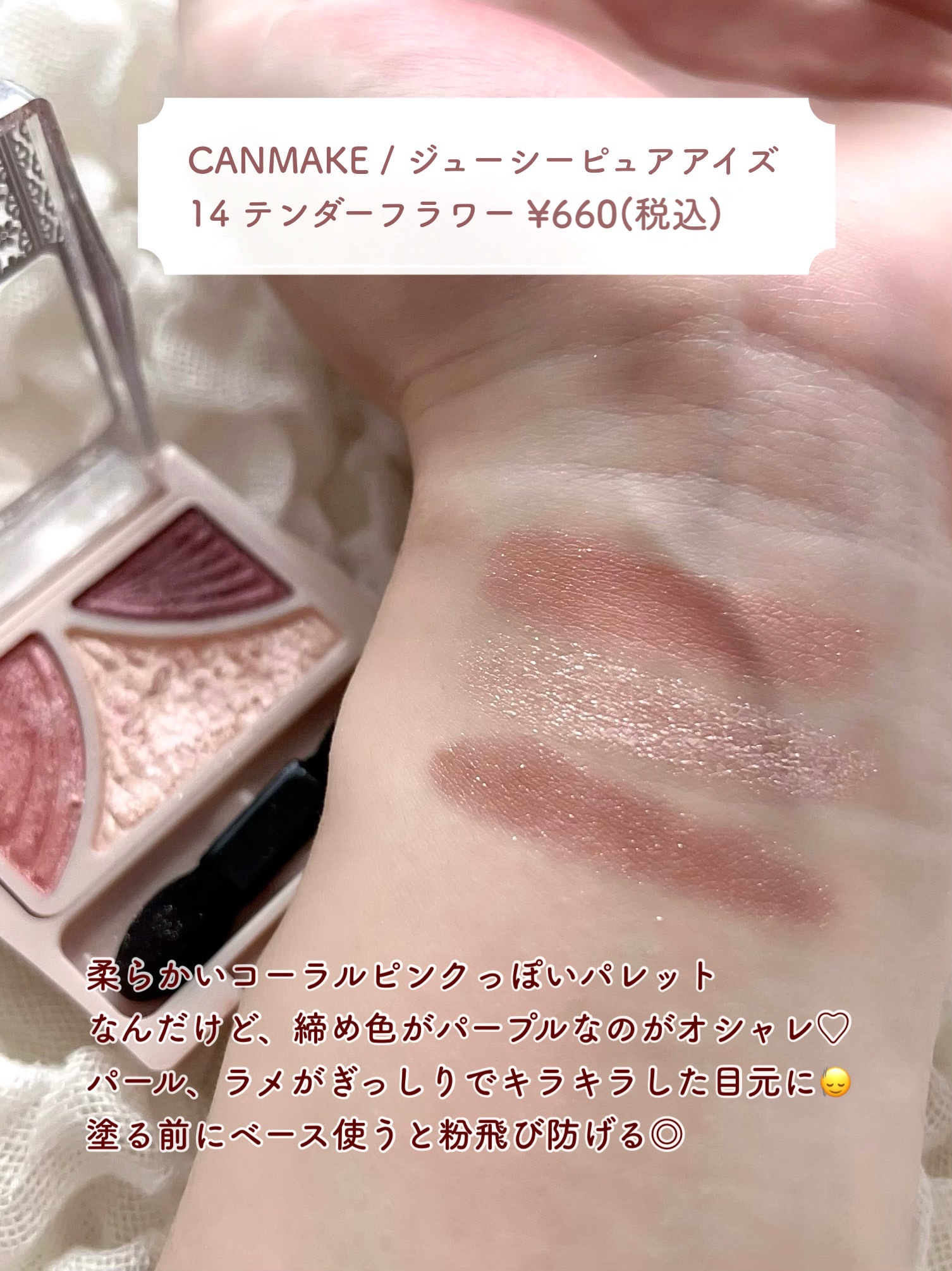 どっちも似たような色味なんだけど、絶妙に違いがあって可愛い🥰 CANMAKEもCEZANNEもしっとり粉質で密着するしプチプラでこれはすごい。 個人的に可愛くしたいならCANMAKE、甘すぎず大人っぽくしたいならCEZANNEかな💭