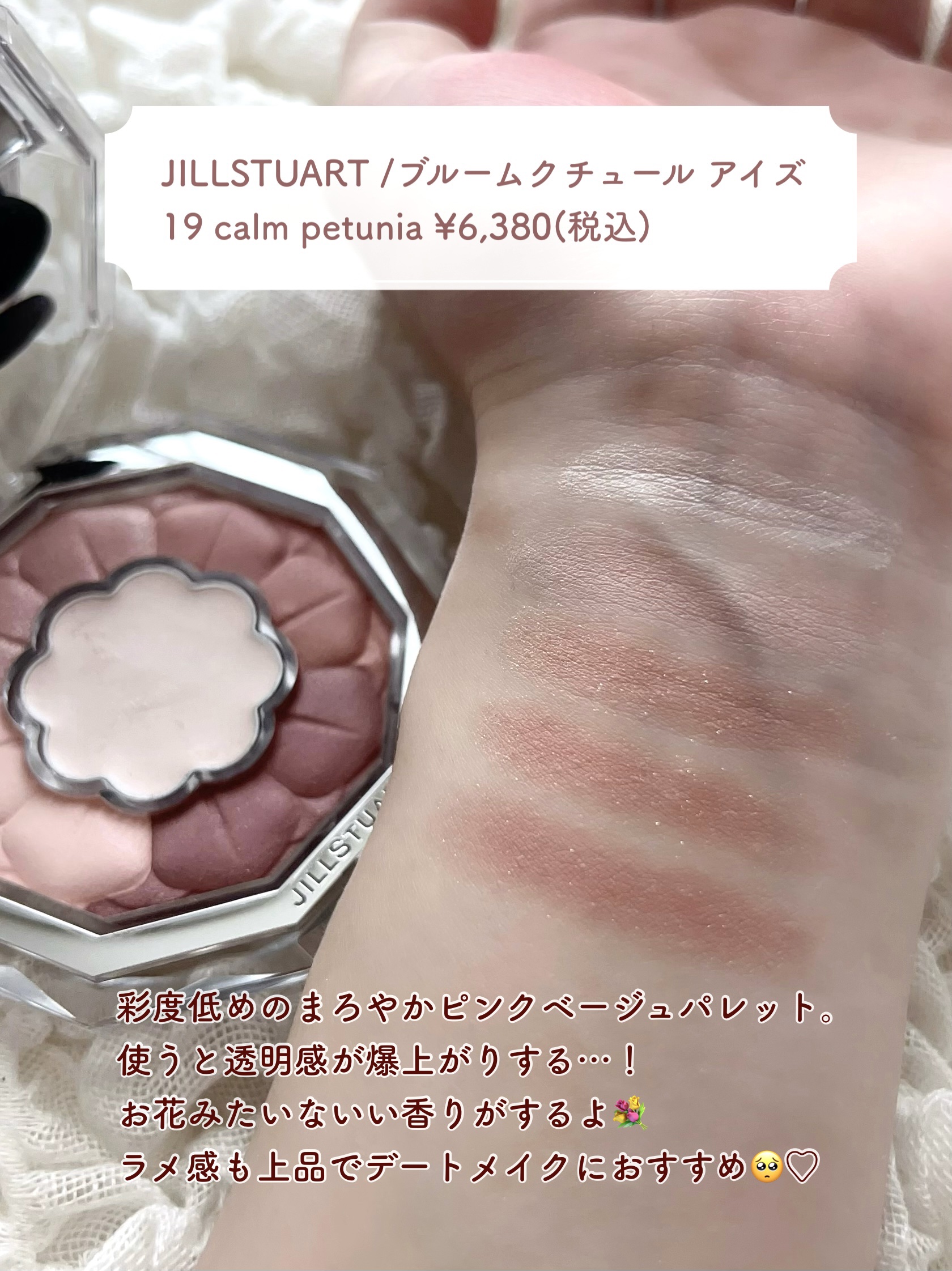 JILLSTUARTブルームクチュールアイズ19calmpetuniaジルスチュアートのコスメってデパコスの中で個人的に一番好みの見た目しててとても好き…ブルームクチュールアイズは最初に買うカラーはどれにしようかとだいぶ迷ったけど…選んだのは...
