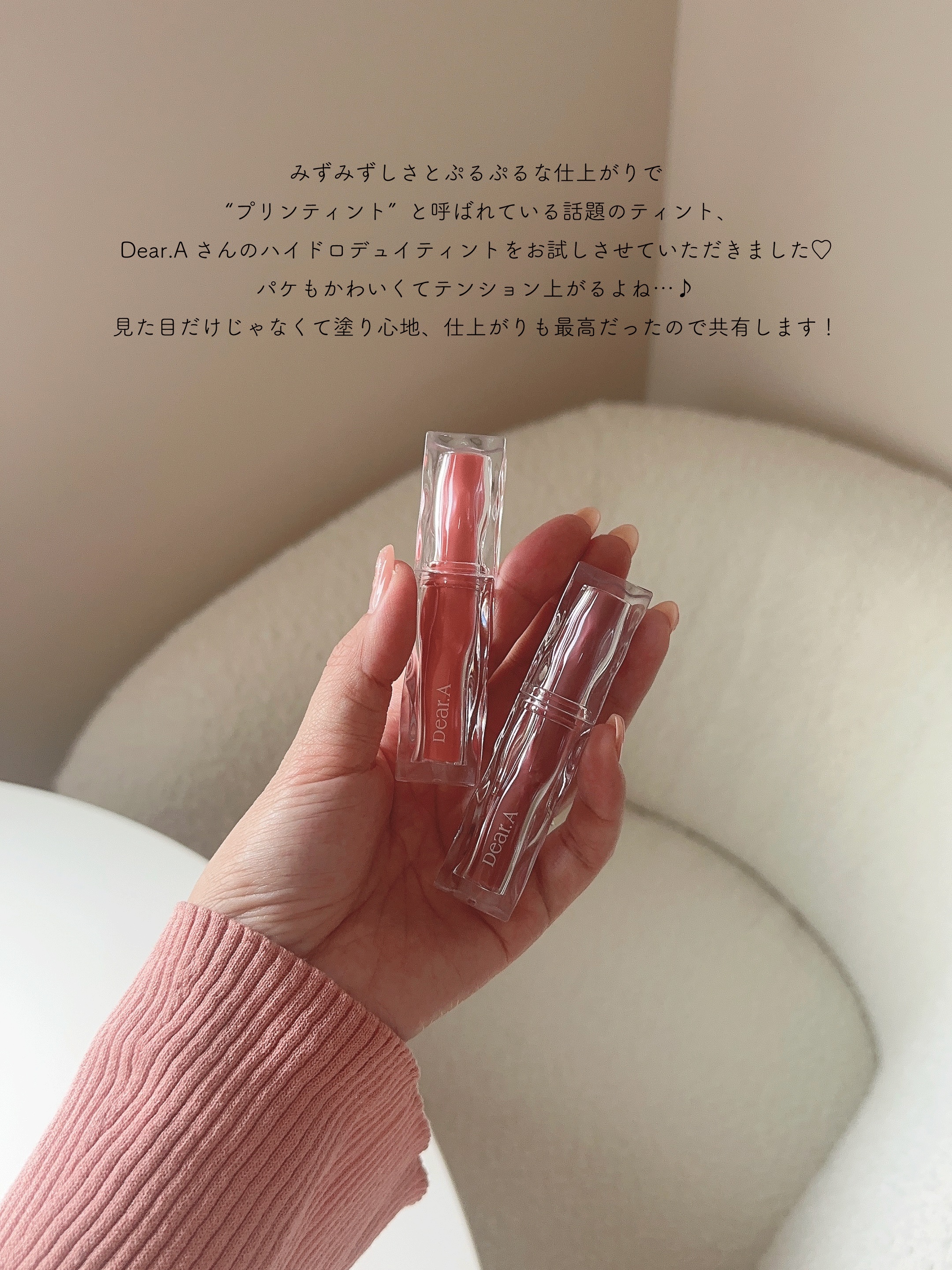 とっても塗り心地が良くてお気に入りになったので おすすめの5色をご紹介します ♡ 軽い付け心地が好きな方、 ぷるんとしたみずみずしい唇に仕上げたい方におすすめ ♡ パケも可愛くてテンションが上がりますよね🧊♡