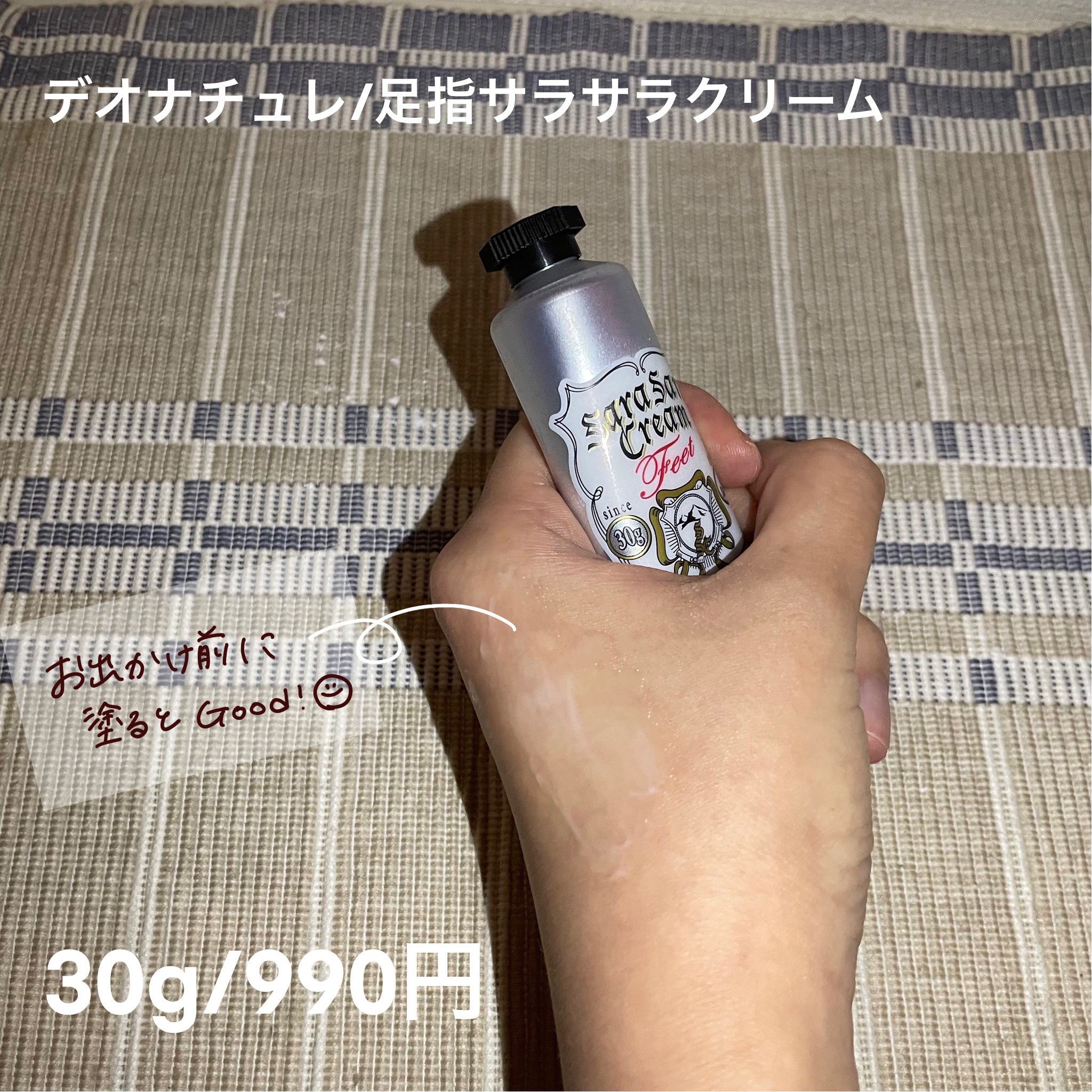 パウダータイプを使ったことがあまりなかったですが、使った感想としてパフが大きくとても塗りやすいこととつけた後、とてもサラサラでよかったです! 前にも投稿させて頂きましたが、愛用しているものです✌︎ -᷅ ̫̈-᷄ ✌︎ 夏は特に足の匂いが気になっていて悩んでいましたが この商品に出会って気にならなくなりました。 デオナチュレさんの商品はどれも素敵な商品ばかりで このクリームタイプもとてもよかったです。 サラサラでベタつかない。 時間が経っても匂わなかったです- ̗̀👏🏻 ̖́-