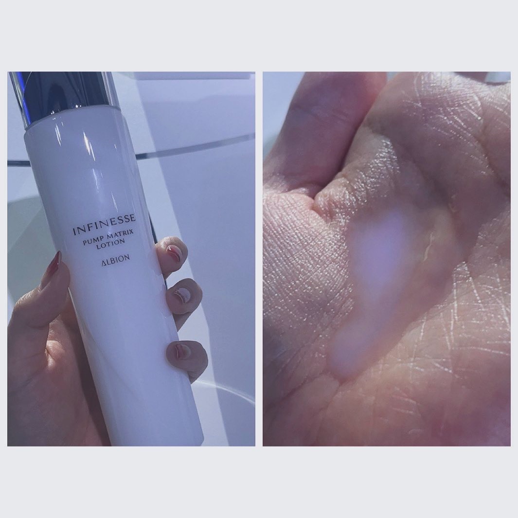 \乳液でふっくらな肌触りに/【ALBIONアンフィネスパンプマトリクスミルク】☑️200g¥7.700アルビオンといえば先行乳液、乳液を使ってから化粧水という使い方。とろみがしっかりあるややクリームに近いくらいのテクスチャー。3プッシュほどコ...