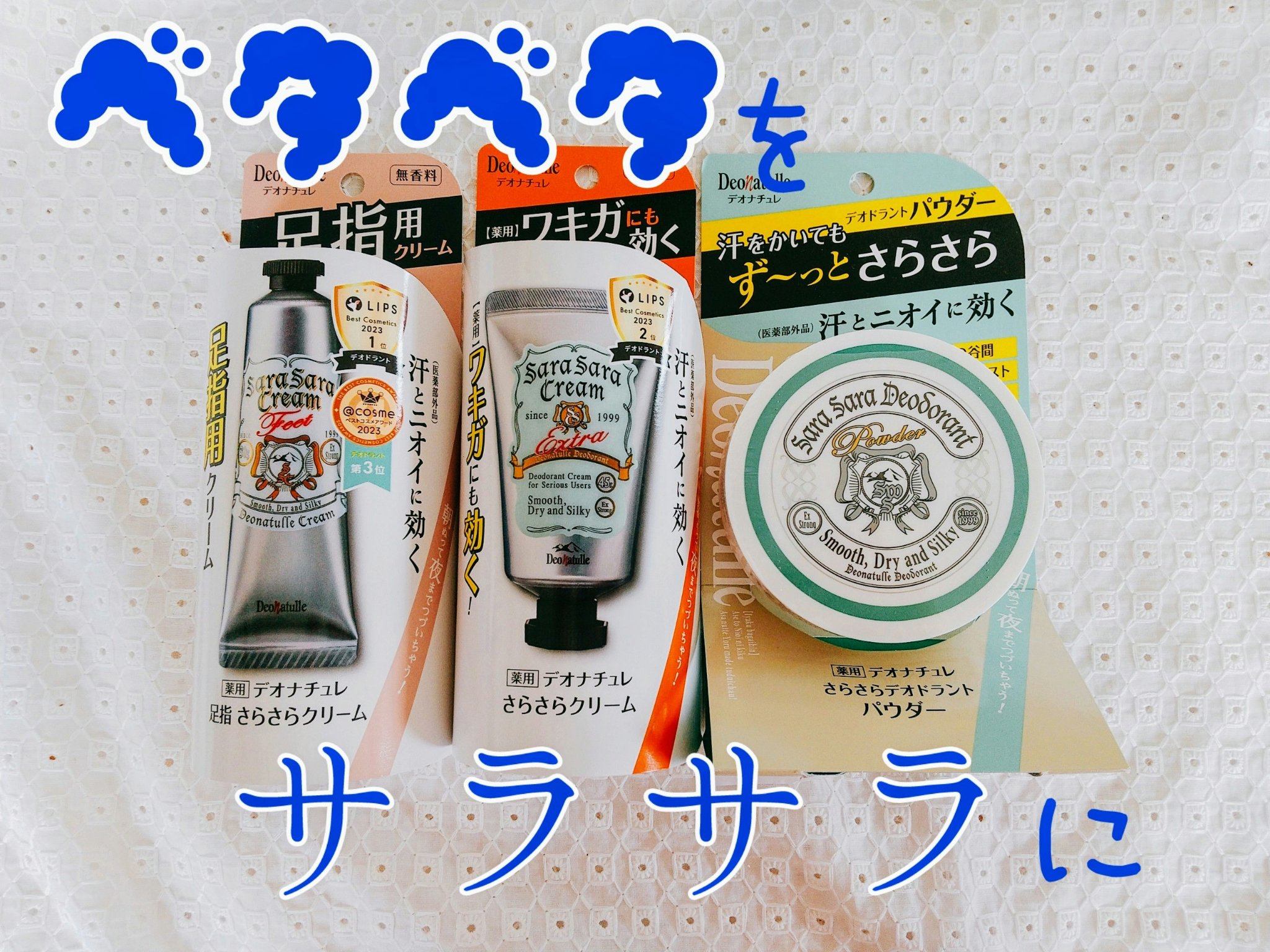 デオナチュレさまから「薬用さらさらクリーム」「足指さらさらクリーム」「薬用さらさらデオドラントパウダー」をいただきました💐【Pickup💖】①【さらさらクリーム】ワキガにも効く!クリームだから広範囲に塗り込める!②【足指さらさらクリーム】足の...