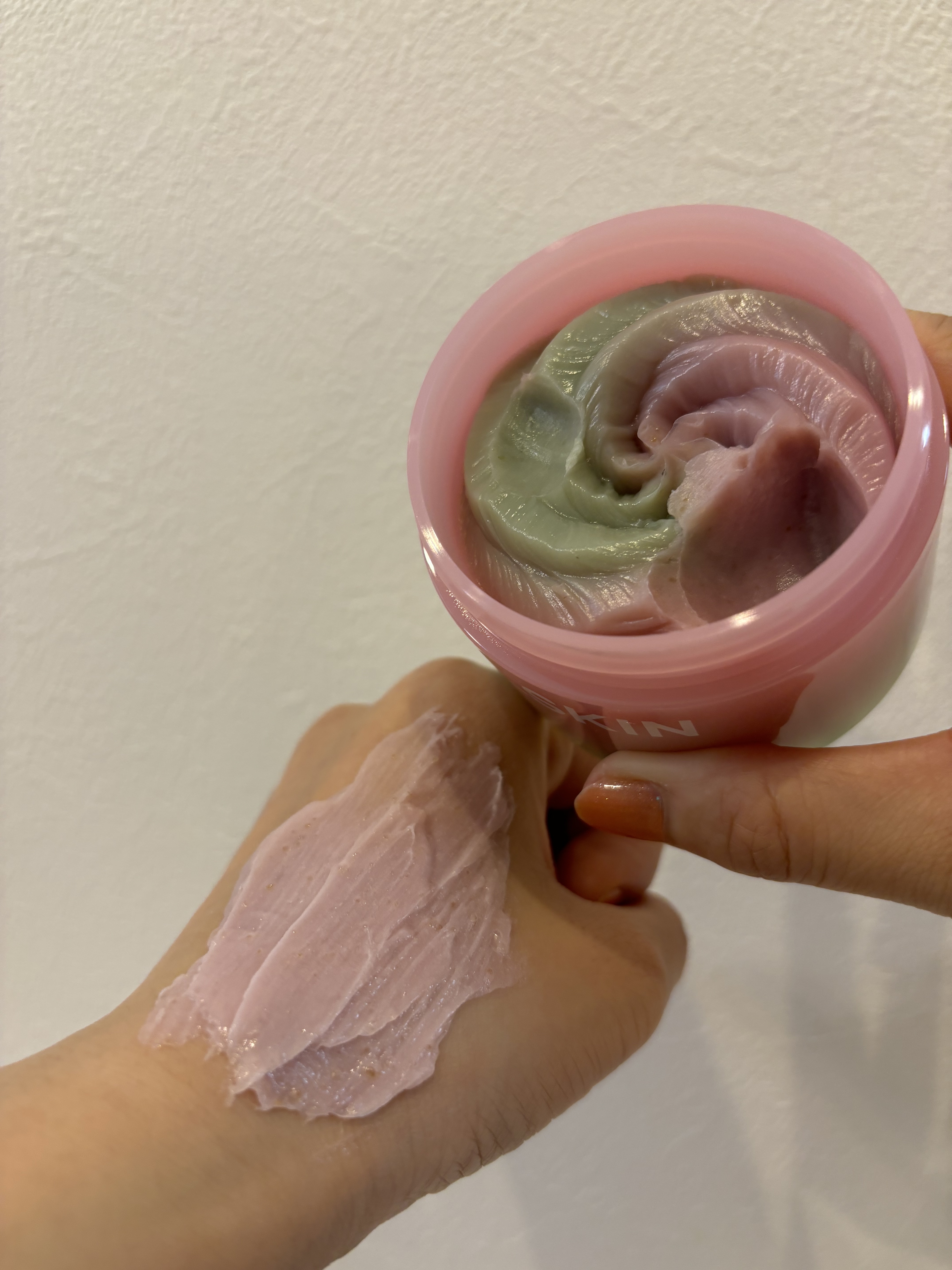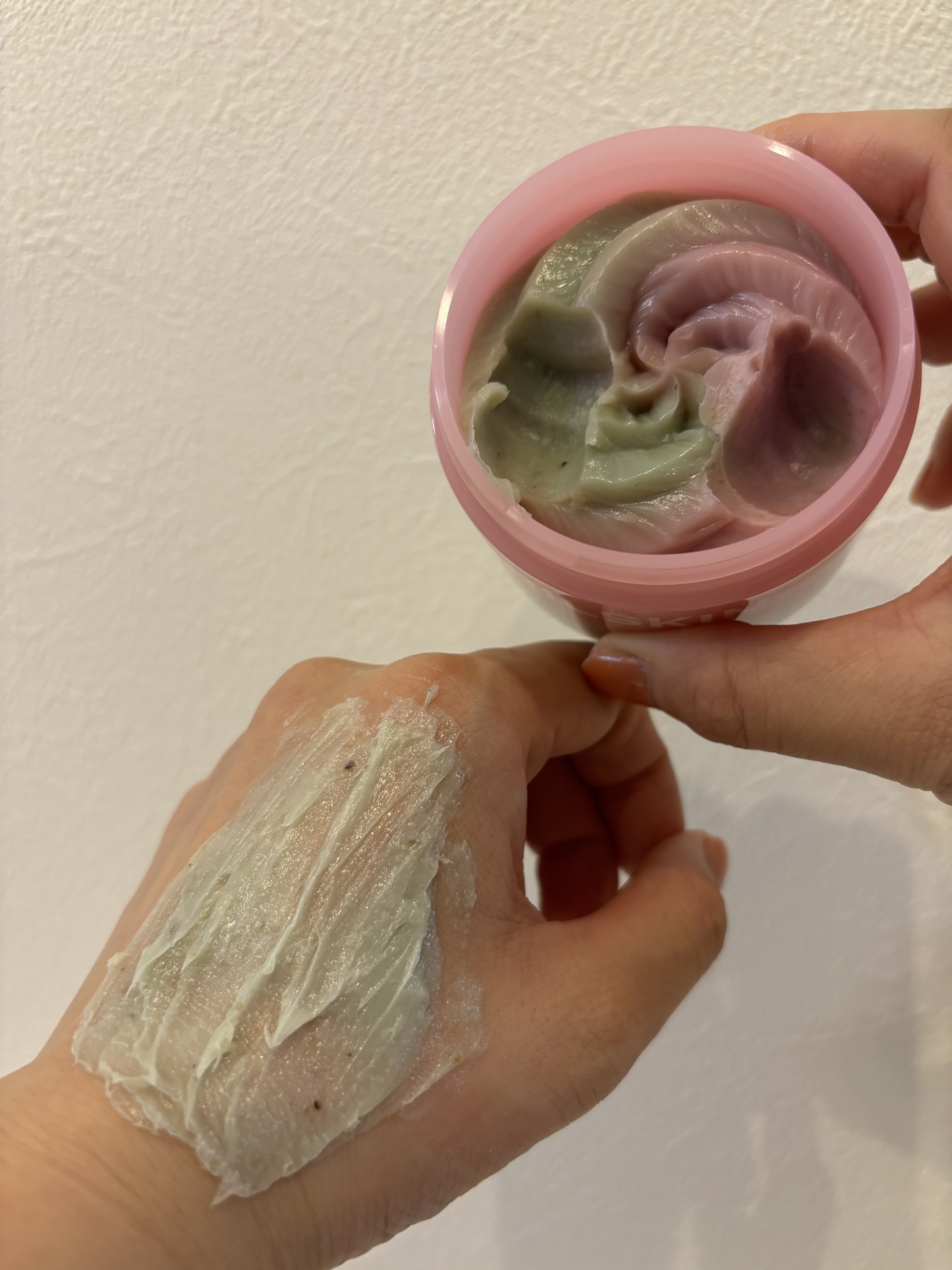 鎮静成分が198% 高いピンクアロエ🩷(※アロエ成分内polyphenol含有量) 可愛すぎるクレンザー🥰 甘い香りも可愛くて世界観にきゅんとします♡ 便利な2wayタイプで①パック 目元を除いた顔面に塗布 1分後優しく洗い流す