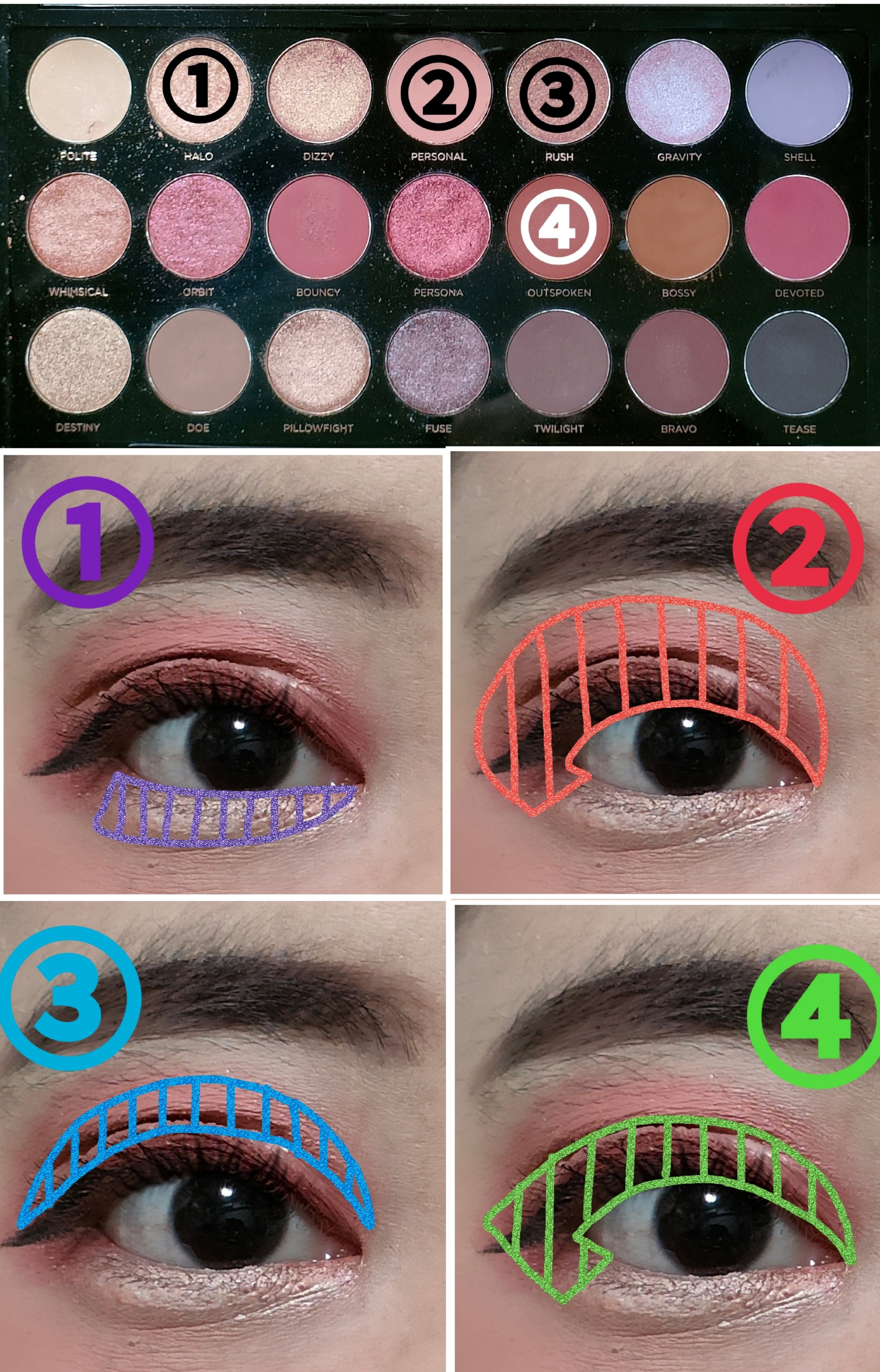 アイシャドウパレットは、URGLAM UR GLAMBLOOMING EYE COLOR PALETTE 02を、使用しました。 マスカラは、MAYBELLINE NEW YORK コロッサルボリュームエクスプレスを、まつ毛全体にまんべんなく塗ります。 リップは、wet 'n' wild MegaLast Lip Colorを、唇全体にまんべんなく塗ります。