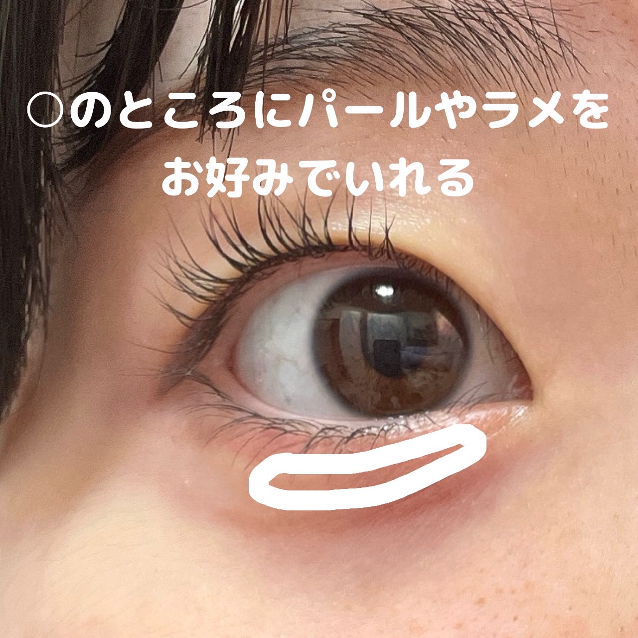 淡いピンクベースでキラッキラのゴールドラメが入っていてめちゃくちゃ可愛い♡ 青みピンクよりなのですっごく透明感がでます🫧 このアイシャドウは結構キラキラなので特に涙袋に塗るのがおすすめです!涙袋にうっすらと塗ってポンポンと指でぼかすといい感じにぷっくりとした涙袋ができるんです🥹 ブルベさんやキラキラ好きさんに特におすすめです!でもゴールドラメが多めに見えたのでイエベさんも使いやすいと思います✨