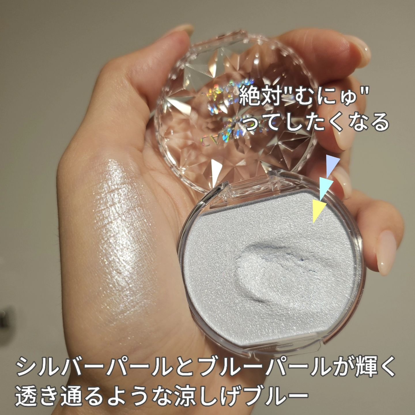 むにゅっと生レア質感のハイライター💫 繊細パールがぎっしり配合されていて、あふれ出すようなうるっとしたツヤ感が魅力的です💐 ❤︎04ブルートパーズ:透き通るような涼しげブルー🩵 ブルーの偏光パールとシルバーパール配合で肌に透明感と光沢感を与えてくれます 頬に塗って使うのがお気に入り! 透明感を演出したい方におすすめしたいブルーカラーのハイライトです🤍