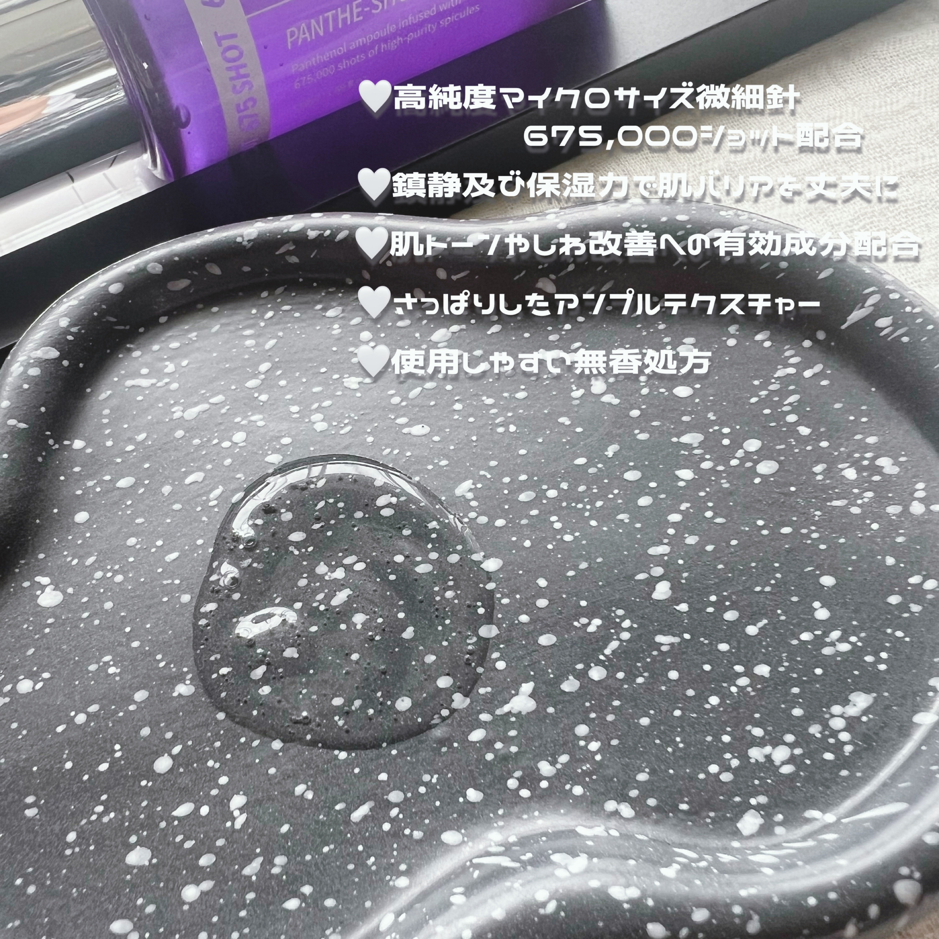 COSNORIコスノリパンテショットハリ肌生成部第2期に入部し、パンテショット675をお試しさせていただきました❣️夜のみ間隔を開けて2週間使用しました。多少のチクチク感は当然ありますが、痛くない程度で私は平気でした🥰透明なジェル状のテクスチ...