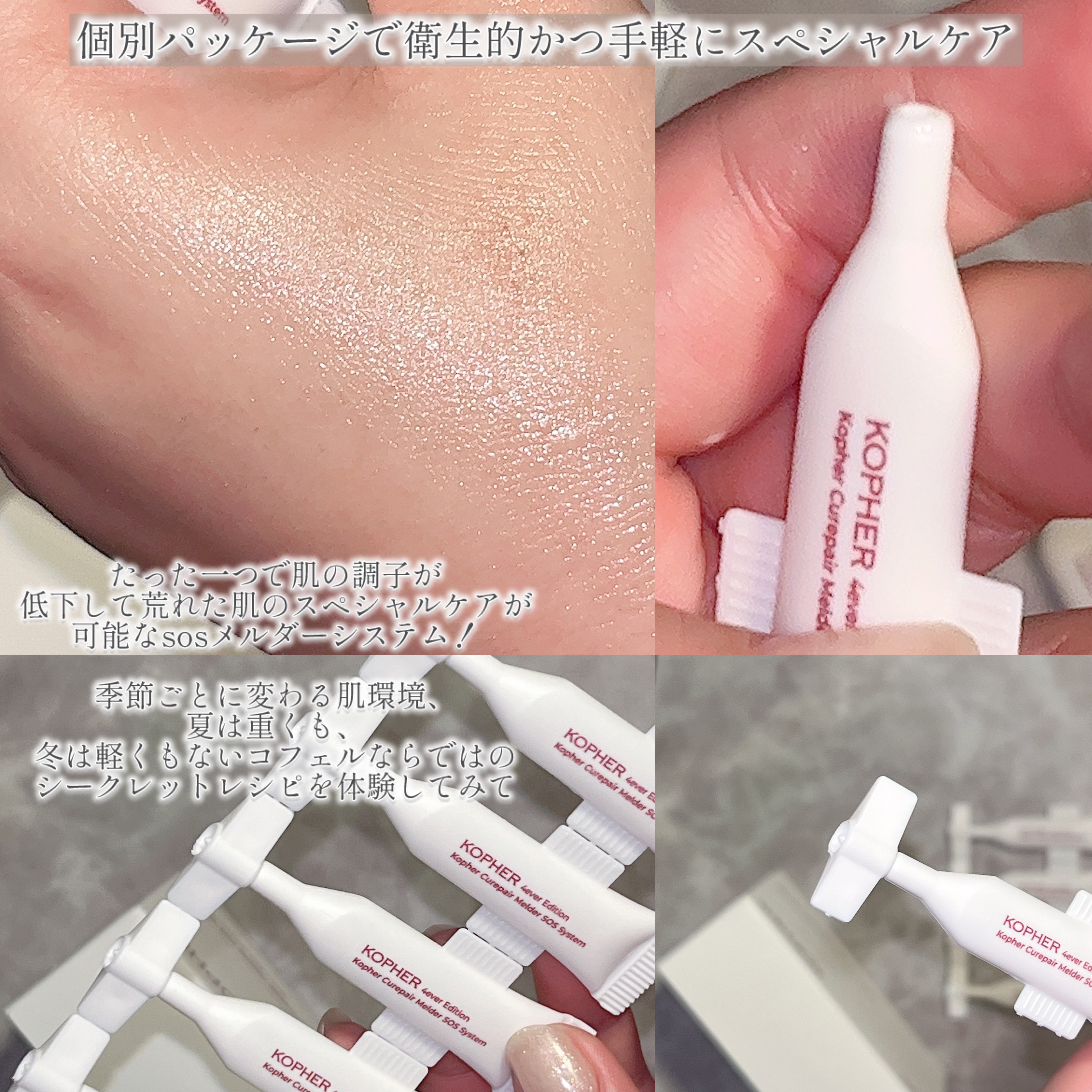 4年で850%成長したKopher! 個別パッケージで衛生的に使えて、手軽にスペシャルケアが出来るのは嬉しい♡ EGFを含む10種類の合成ペプチド(成長因子)配合 マトリカリア花、スイカズラ花エキスを配合 豪華な成分配合で保湿 肌荒れ防止 いざと言う時に使いたいクリーム