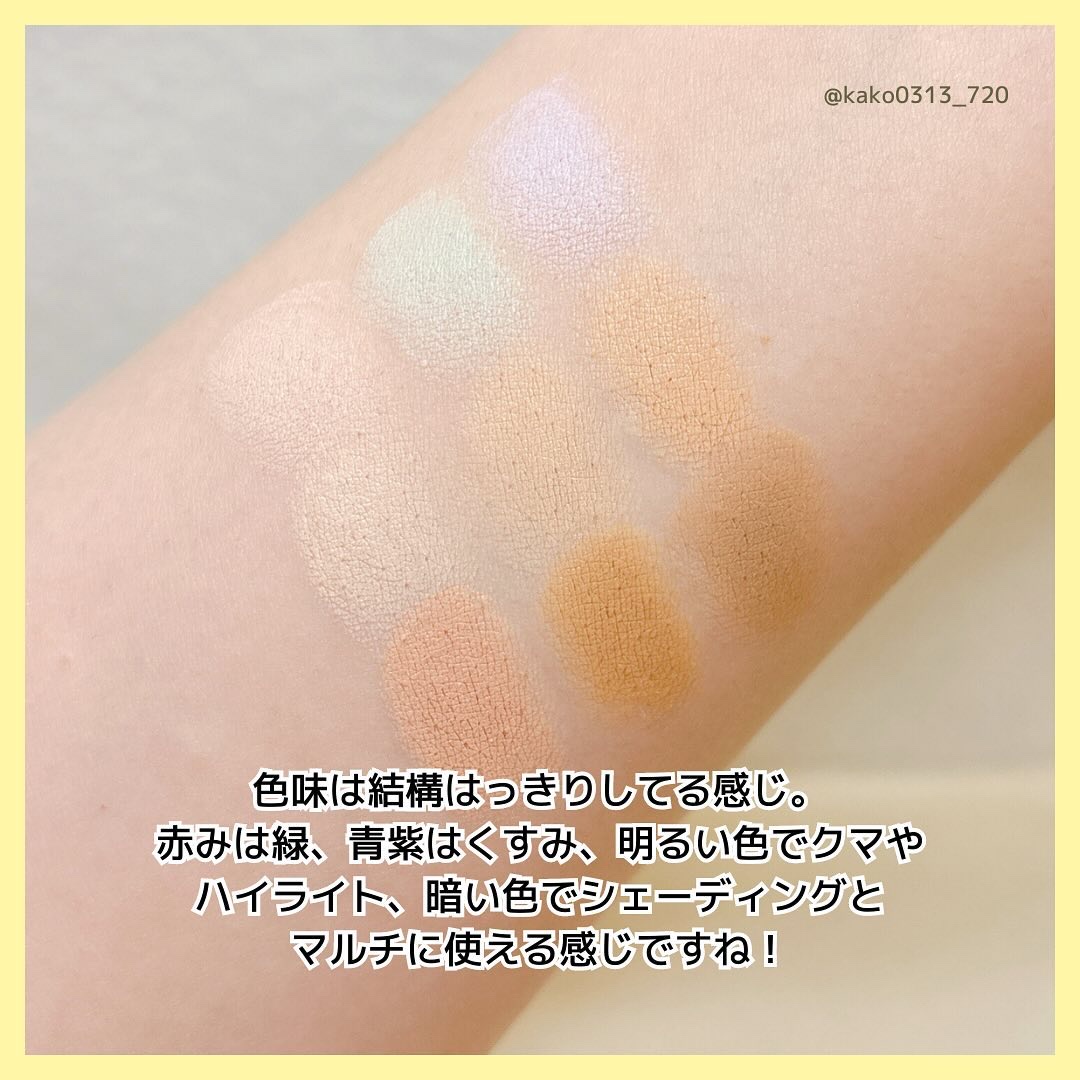 とろけ質感なのに密着カバー!TIMAGEのコンシーラーパレット01ミディアムカラーを紹介します🩵 上段2色、ライトベージュとオークルベージュは生チョコのようなやわらかな質感で、下段サーモンオレンジはクリーミーな質感です! やわらかテクスチャーなのに崩れにくいのはコンシーラーの中に含まれたパウダーが皮脂を吸着し肌との密着力を高めてくれるから!