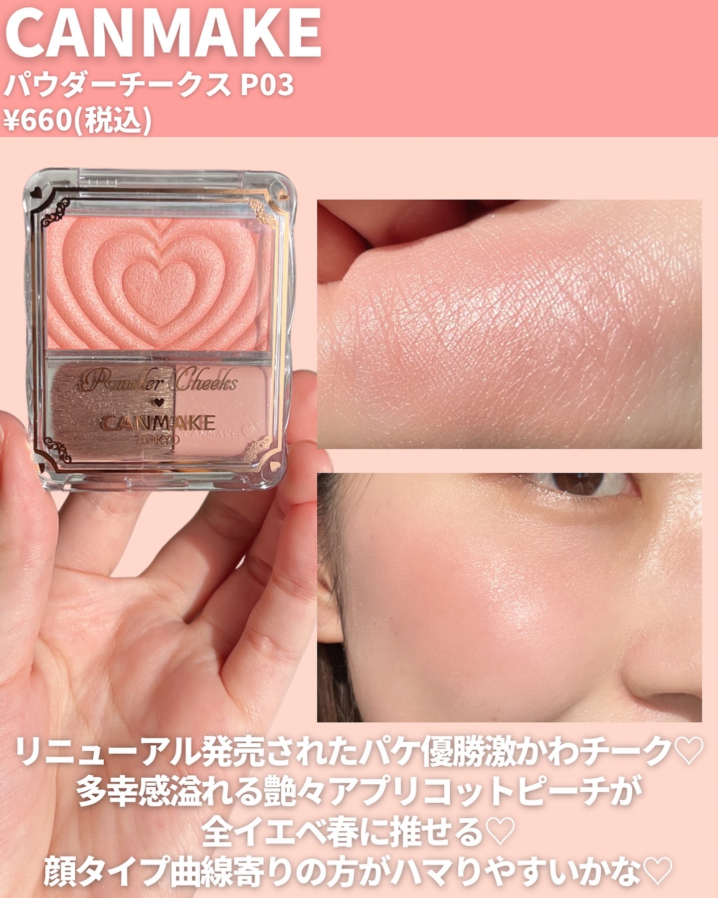 | チークランキング第3位 | ときめきチーク🥹見たまんまの綺麗な発色でツヤ感もあって良い♡ | 詳細を見る | |